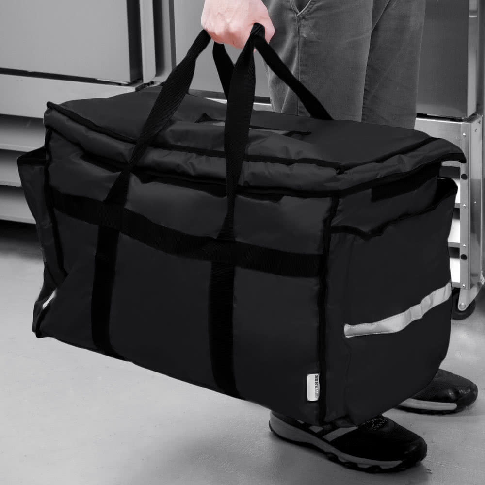 1.PREMIUM QUALITY BAG- Our insulated bags are made with high quality polyester fabric, extra thick PE foam insulation,aluminum foil liner, and the highest end YKK zippers to ensure a long lasting, sturdy bag that keeps your food hot OR cold longer! 2.VERSATILE BAG FOR MANY USES  - This bag is perfect for food delivery services  as well as restaurants and professional caterers. Keep one in your car for going to the grocery store or use for picnics! 3.XXL EXTRA LARGE SUPER SPACIOUS SIZE  - 23"x14"x15"Caterers: Plenty of room to carry up to 4 full size steam table pans or a combination of full size and smaller pans. 4.Food delivery: Use the TWO INCLUDED DIVIDERS to split up multiple delivery orders!