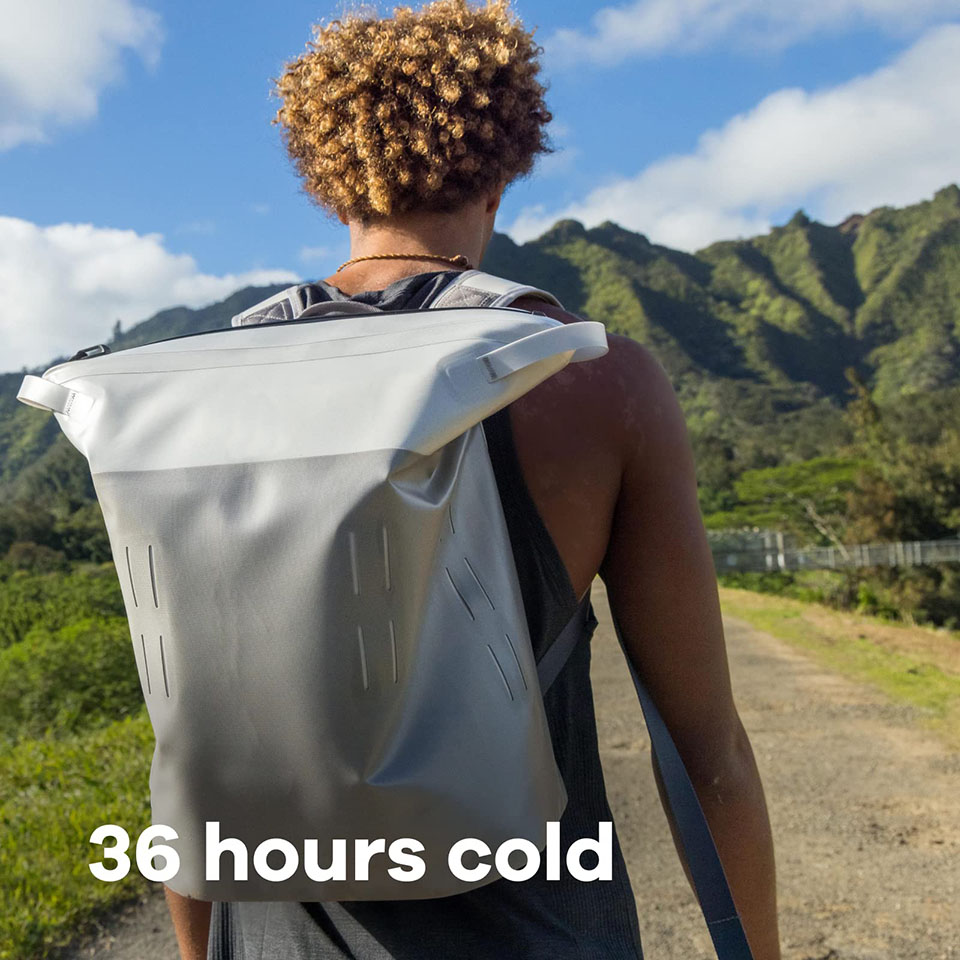 COOLING PERFORMANCE: Guarantee 16 hours at temperature below 15ºC with freeze packs (The duration will vary according to the environment temperature) LEAKPROOF: Thick layer of food-grade PEVA insulation materials inside to ensure the frozen things don't leak after melting LARGE CAPACITY & OPENING: Dimension: 43 x 31 x 17cm; Weight: 620g; About 22L, can hold at least 24 cans. Large opening makes you easy to access COMFORTABLE & PORTABLE: The breathable shoulder straps are very comfy to wear on your shoulders and back. Design with handles, can also be carried by hand. SUGGESTIONS: Don't put the ice directly into the rucksack to avoid cutting off the leak-proof material inside. We can use the freeze packs to keep everything cool all day. Good for beach trips, picnics, camping, hiking, swimming, etc.