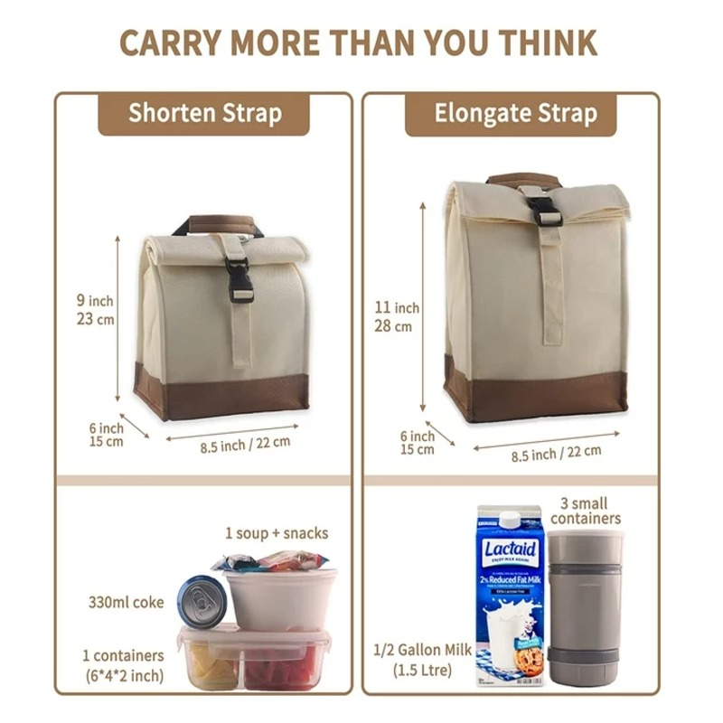 Roomy and versatile】This insulated lunch bag is spacious and adaptable, with dimensions measuring 8.5" x 6" x 9" (length x width x height). It has the capacity to hold 12 cans of 330ml soda.