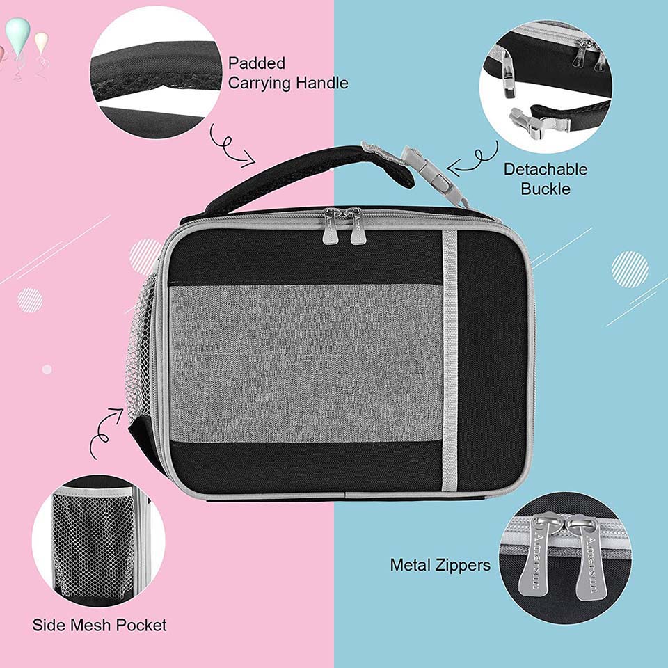 * kids lunch bag is made of 3 layers of premium material. The exterior is made of water-resistant and stain-resistant