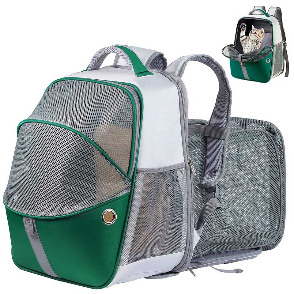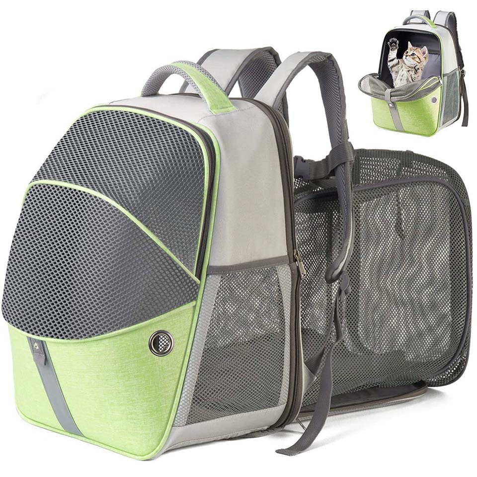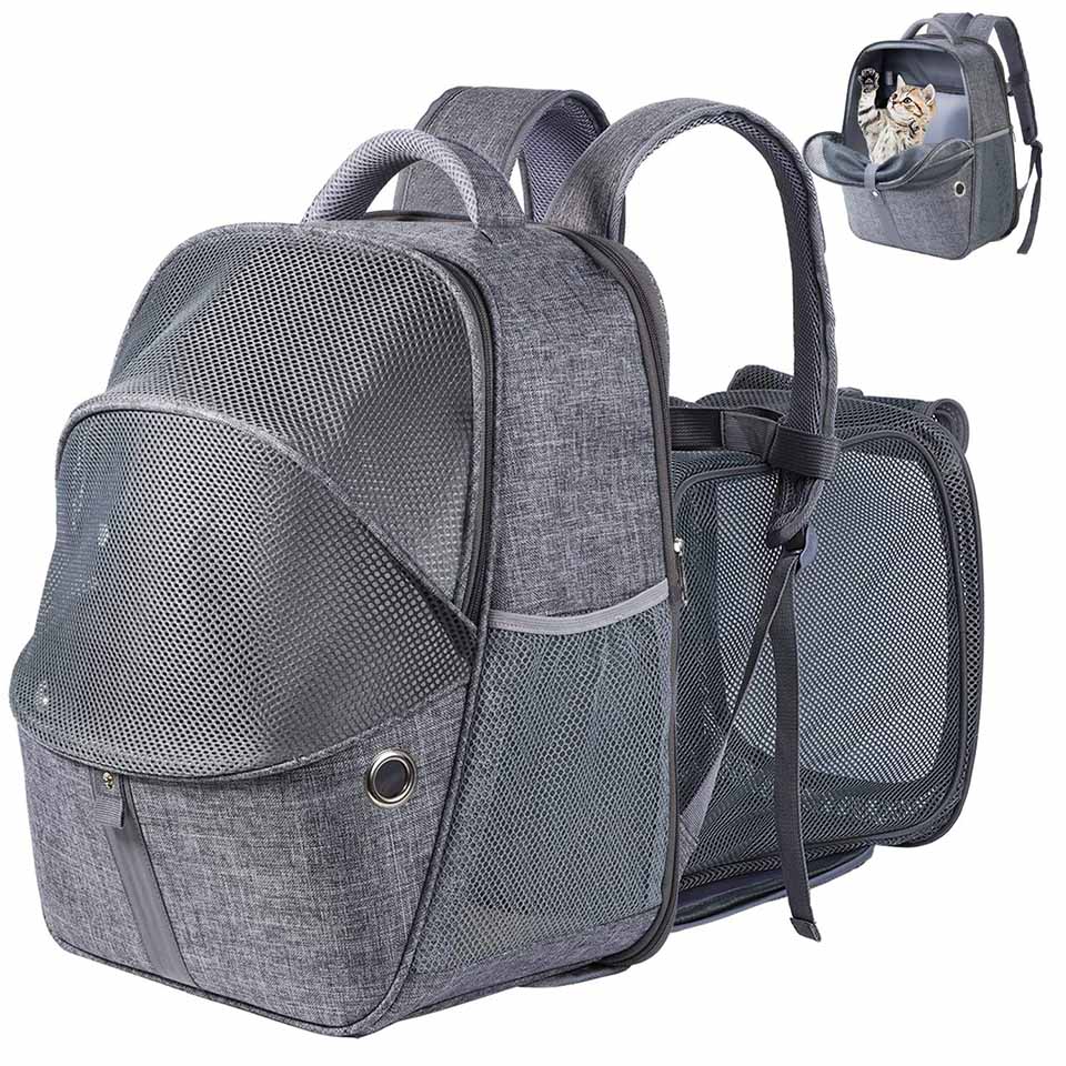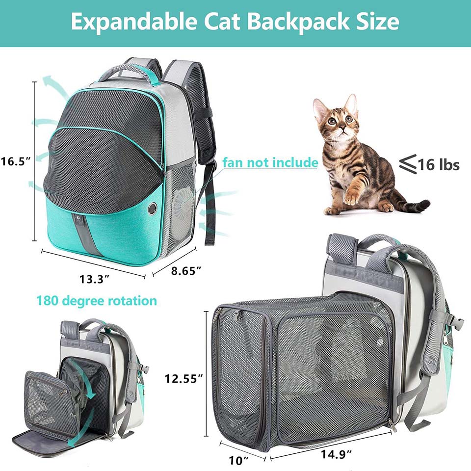 * 【DURABLE MESH EXPANDABLE CAT BACKPACK】: Cat backpack expandable is made of waterproof 900D Oxford fabric, durable scratch-proof mesh. Pet backpack expandable with roomy space, inside cat backpack carrier expandable breathable mesh with a soft fleece mat for pet to stay comfortable. Pet travel backpack size at 13.3*8.65*16.5", Roomy expandable for pet backpack carrier size at 14.9*11.7*12.55”, Pet expandable backpack carrier is suitable for small dogs, small pets,medium cats .