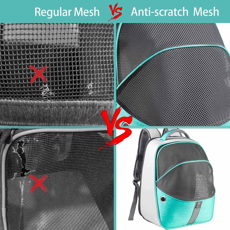 • Whether you need a cat backpack carrier or a dog backpack carrier, this pet carrier backpack will keep your fur friend safely inside, allowing you to focus on managing your trip. • The leash tether could be attached to your pet to prevent escape if you want to leave the top open for your pet to stick their head out. • The high grade scratch-resistant polyester and reinforced metal zippers serve as another barrier to prevent escape, so give your pet ultimate protection.