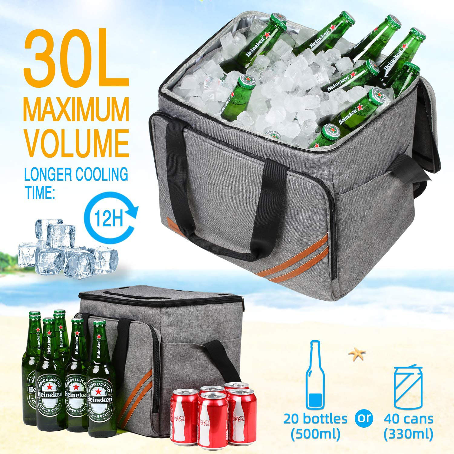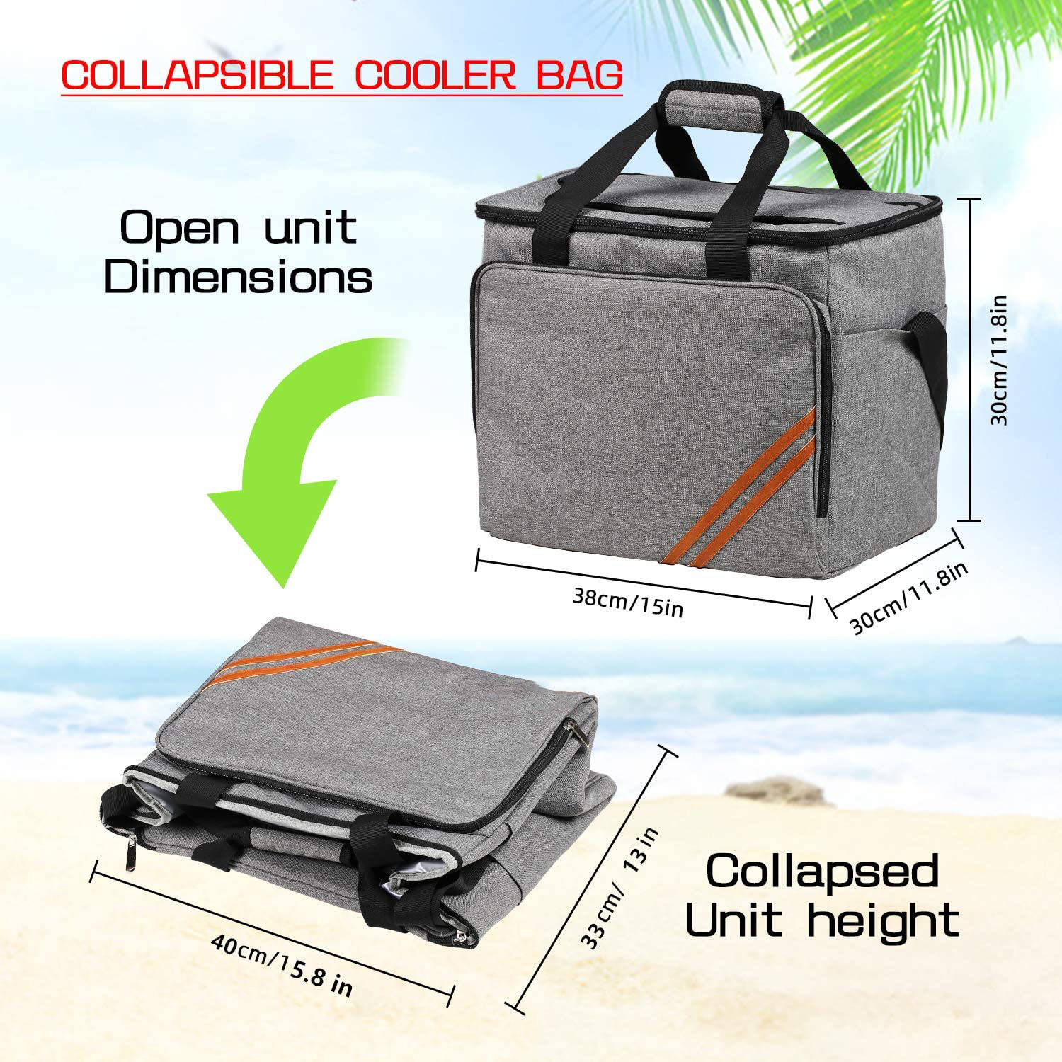 COOLING PERFORMANCE: Guarantee 16 hours at temperature below 15ºC with freeze packs (The duration will vary according to the environment temperature) LEAKPROOF: Thick layer of food-grade PEVA insulation materials inside to ensure the frozen things don't leak after melting LARGE CAPACITY & OPENING: Dimension: 43 x 31 x 17cm; Weight: 620g; About 22L, can hold at least 24 cans. Large opening makes you easy to access COMFORTABLE & PORTABLE: The breathable shoulder straps are very comfy to wear on your shoulders and back. Design with handles, can also be carried by hand. SUGGESTIONS: Don't put the ice directly into the rucksack to avoid cutting off the leak-proof material inside. We can use the freeze packs to keep everything cool all day. Good for beach trips, picnics, camping, hiking, swimming, etc.