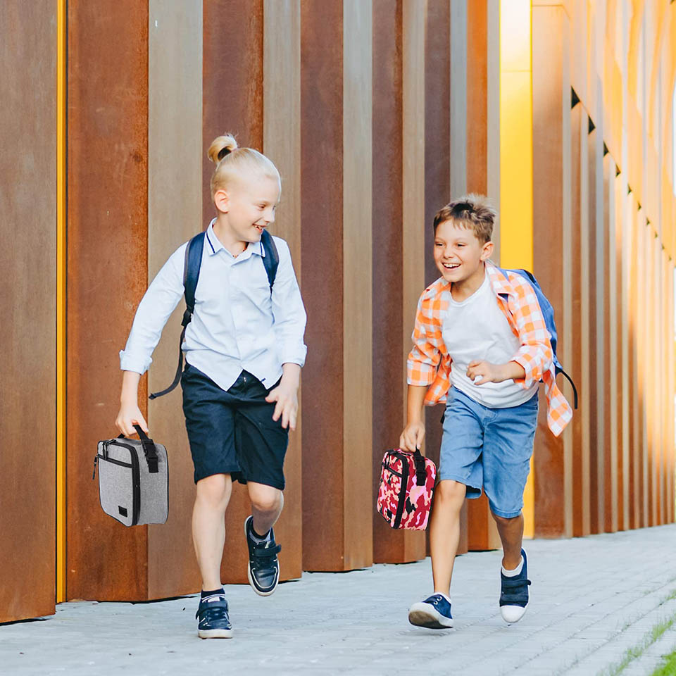 1.UPERIOR QUALITY – Premium fabric makes this lunch box durable, sturdy and easy to clean. 2.TRAVEL-FRIENDLY DESIGN – Each compact, lightweight lunch box can hold a good-sized container with plenty of room for snacks, utensils and juice boxes. 3.Features include a zippered front pocket for hiding a surprise dessert or fun note, inner elastic tabs to secure water bottles or ice packs, and a handy inner mesh pouch perfect for napkins and utensils. 4.SPACIOUS DESIGN – Measures 9.75x7x3.25 inches. You’ll find it super spacious and will have no problem fitting your lunch inside. Go ahead, pack that extra treat! 5.GUARANTEED SATISFACTION – PVC, BPA and Phthalate-free makes this an eco-friendly option with an unmatched quality and a reliable replacement warranty for service you can trust.