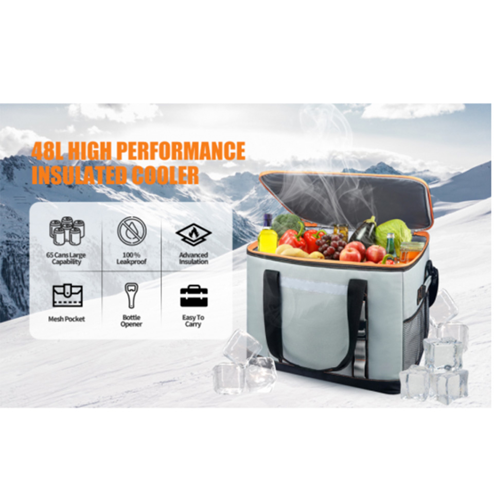 Brand Name: chaumetbag Material: Polyester Type: insulated Use: Food Feature: Waterproof, insulated, Thermal Pattern Type: customized Product name: cooler bag Color: black,grey Size: 23.7 x 14.5 x 14.2 inches Logo: Customized Capacity: 80L MOQ: 300 Pcs Usage: Carry Food With Cup Holders Weight: 0.58kg Sample: 5-7 Days Send OEM/ODM: Accepable