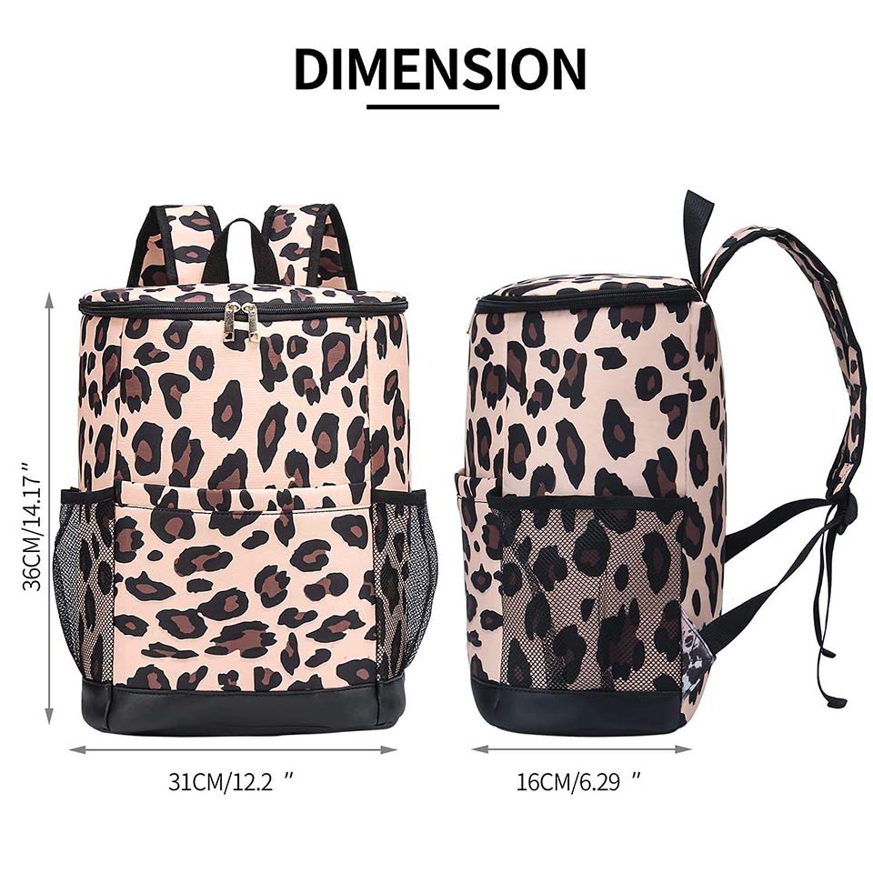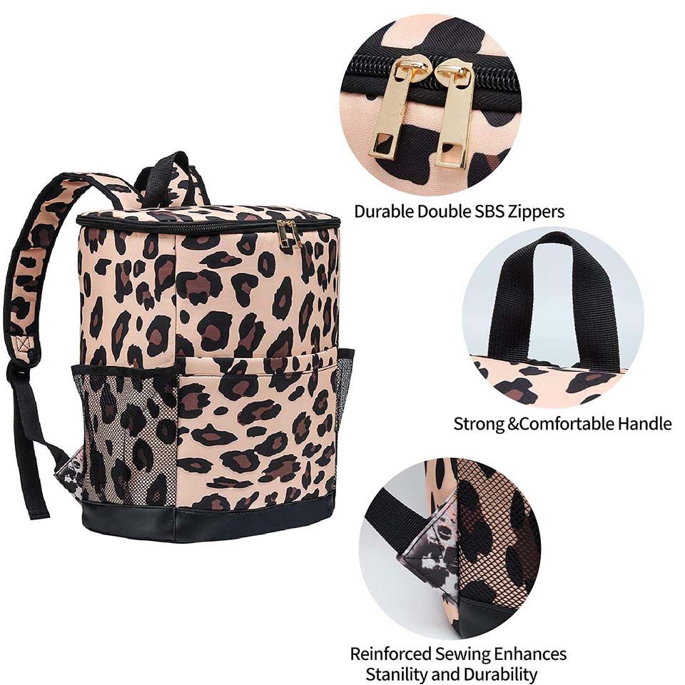 Cooler Backpack Women Leopard Leak Proof Backpack Cooler Bags Lightweight Soft Lunch Backpack with Cooler Compartment
