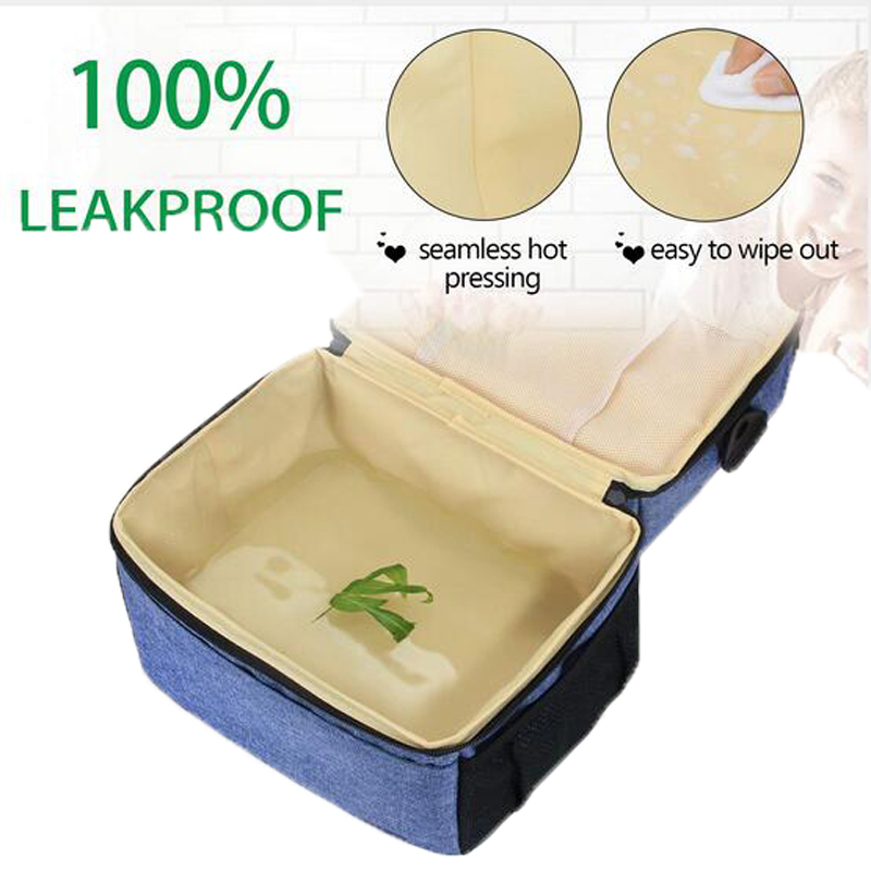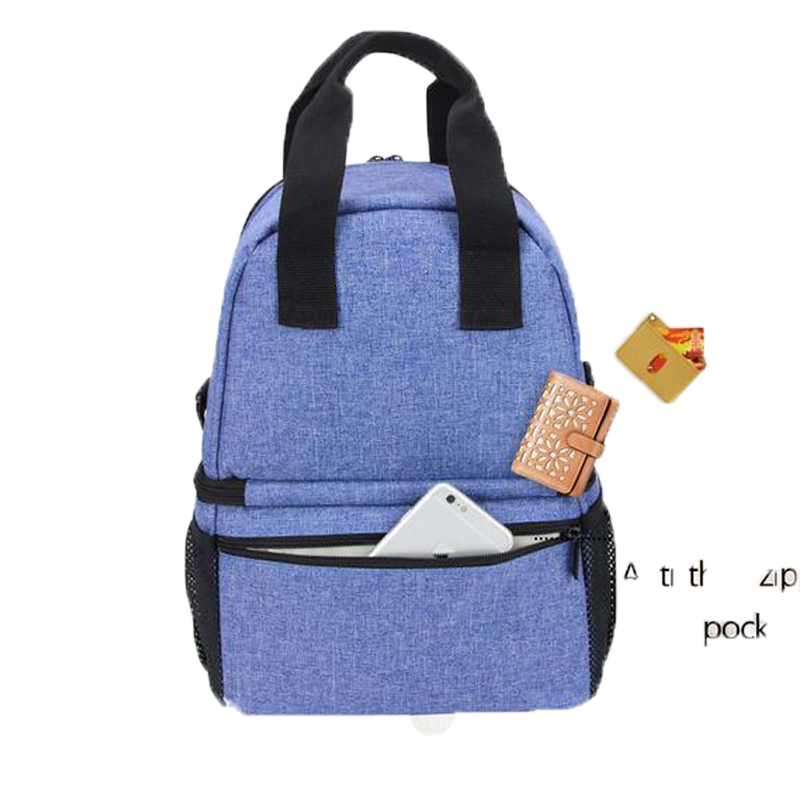The top of the bag is made of PEVA material, for keeping your food fresh, suitable for fruits, snacks,drinks, etc The bottom of the bag is made of aluminum foil, for keeping your food warm, different temperatures can maintain 4-8 hours of insulation Size of lunch bag: 24 x 20 x14.5cm, the top of bag:20 x 14 x13cm, the bottom of bag:20 x 15 x 9cm , The length of shoulder strap is adjustable(MIN:29cm, MAX:55cm) The bag is convenient to carry to school, work, picnic, camping,fishing trip etc. Several pockets on front and back for something needed,like phone,tableware, transportation card,earphone,etc Made of high quality and strong oxford cloth, the bag is suitable for hand wash in cold water, NOTE:don't wash in hot water or machine wash