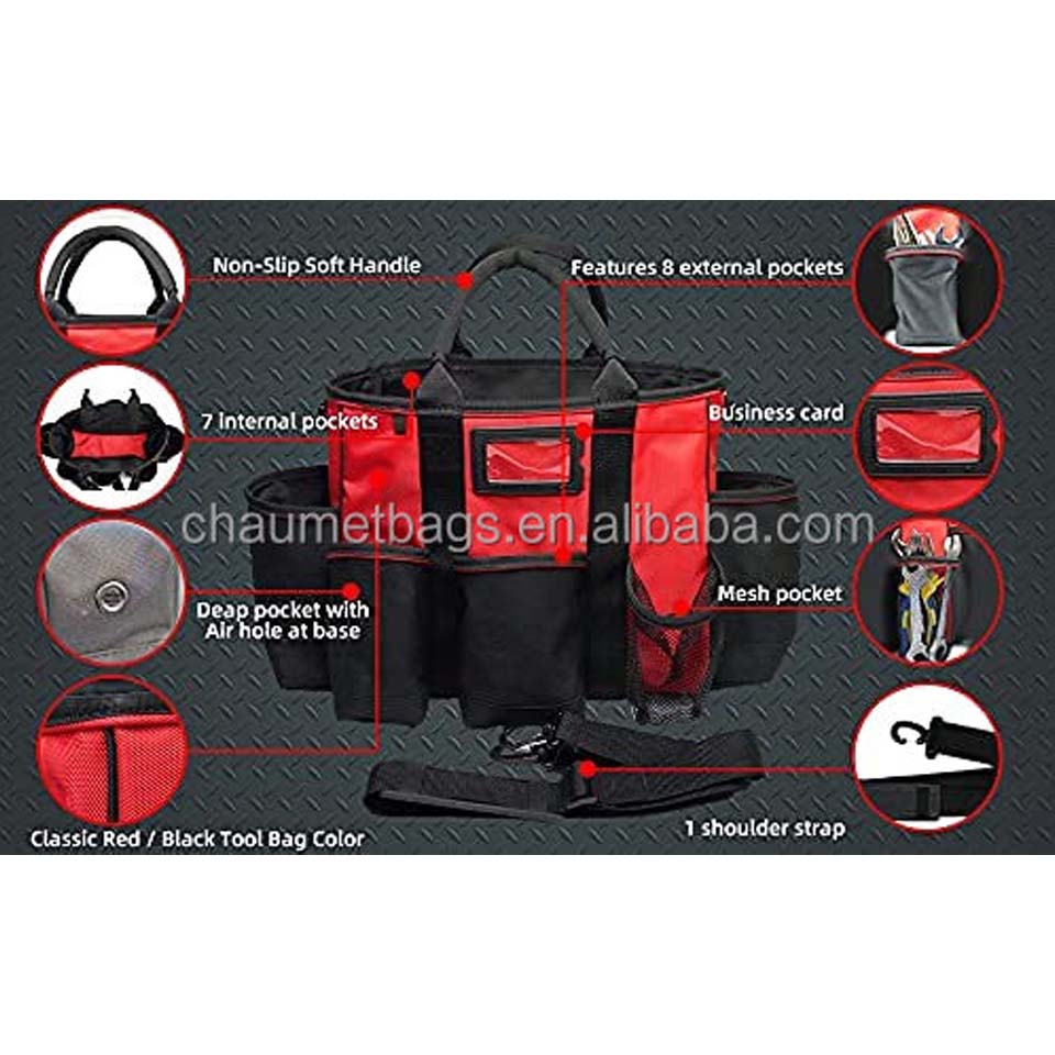 Warranty: 3 years Type: Bag Color: Other Customized support: OEM Brand Name: chaumetbag Product name: Electrician Tool Bag Material: Nylon Size: 14.5 x 11 x 22.5 in Colour: Customized Logo: Customized Logo Usage: Tools Holding Feature: Lightweight Sample time: 5-7 Days Certificate: BSCI,Sedex,TUV,ISO9001 MOQ: 300pcs
