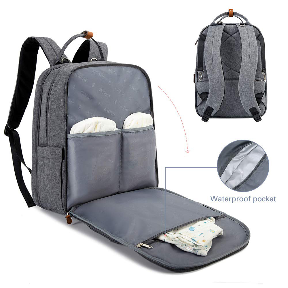 it also includes a soft removable baby changing mat which is waterproof, safe and comfortable to diaper change. * Large Diaper Backpack: It can accommodate all the daily necessities that you need to bring with your babies, such as diapers, bibs, bottles and other baby toiletries. Each independent pocket helps you keep your things organized and find what you need quickly. * Mutifuctional Pockets: Measured with 12.2x5.9 x17 inch, this large diaper bag includes 1 main compartment, 1 diaper organizer compartment, 2 insulated pockets, waterproof pockets, and detachable pacifier holder etc. * Convertible and Versatile Bag: Comfortable wide shoulder straps with plentiful sponge pad help relieve the stress from your shoulder. While the diaper backpack with stroller straps allow you to hanging on a stroller. Very suitable for travel , excursion, going out, shopping, or as a hospital bag. |