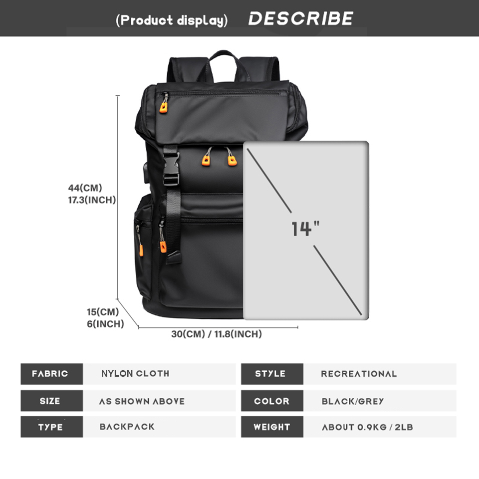 Essential details Place of Origin: Fujian, China Brand Name: Chaumetbag Type: Softback Gender: Male Pattern Type: Letter Closure Type: zipper Interior: Computer Interlayer Carrying System: Air Cushion Belt Handle/Strap Type: Hard Handle Lining Material: Polyester Main Material: Nylon Style: Fashion Feature: with USB, Anti-Theft, Waterproof, expandable Capacity: 20-39 Litre, 20-35 Litre Material: Oxford