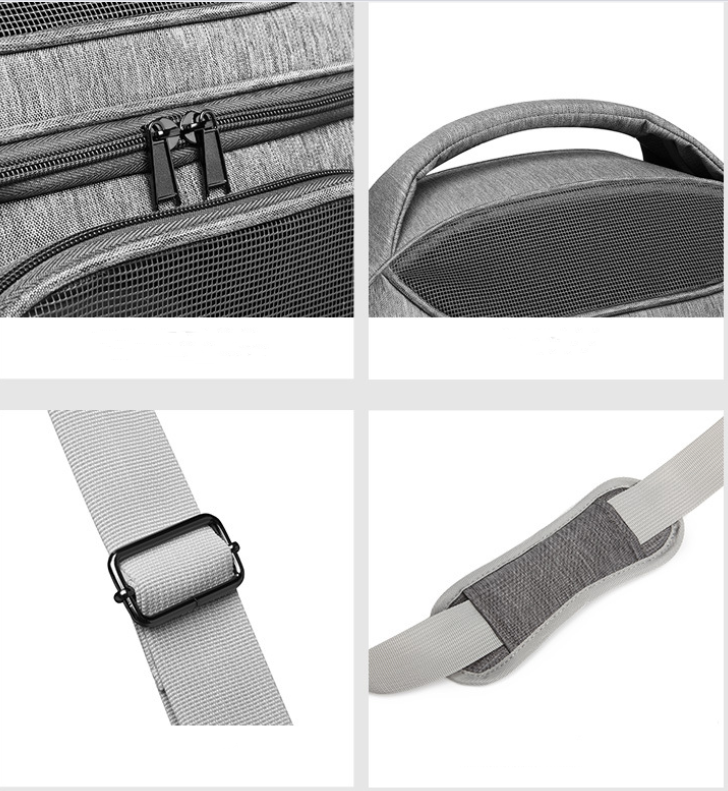 This pet carrier provides two connecting loop handles for balanced carrying as a dual seat belt or luggage strap to secure transport.And it is easy to carry and store, which has a padded shoulder strap and handles.