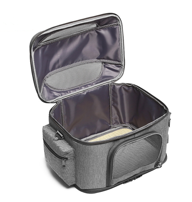 Quick Details Place of Origin: Fujian, China Brand Name: Chaumetbag Feature: Sustainable Application: Small Animals Material: polyester Product name: Pet Rolling Carrier with Wheels Color: Customized Sample time: 5-7 Days Sample charges: USD100 OEM/ODM: Acceptable Function: travel Usage: Outdoor Style: Fashion Type: Pet Training Products OEM & ODM: Accepable