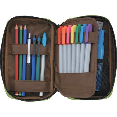 Durable tool bag with large, zippered main compartment, 17 exterior pockets and 10 interior pockets