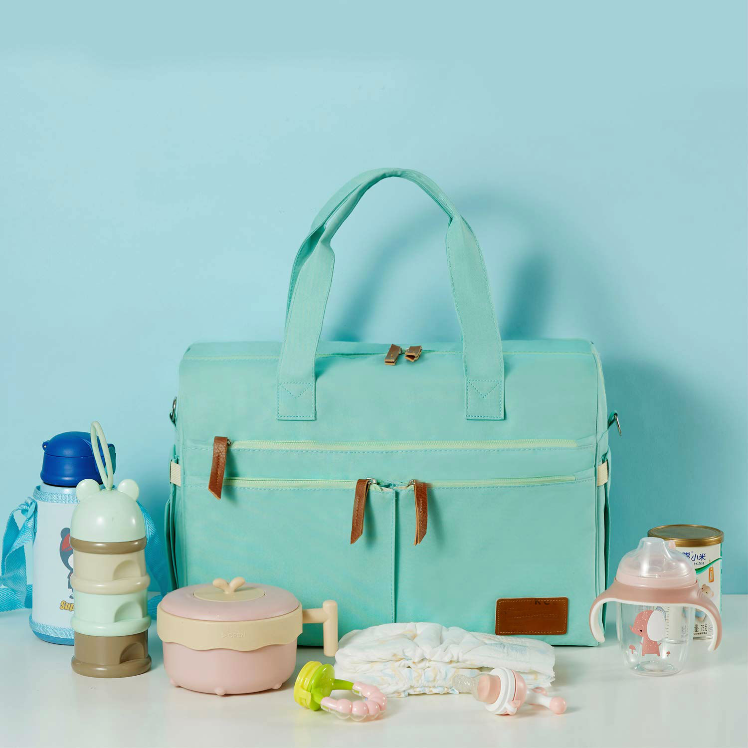 * [Premium Fabric]--The large diaper bag is made of high-quality oxford cloth, which is durable, waterproof and easy to clean. The lining is high-density polyester and tin foil insulation material, which has a soft hand feeling and effectively maintains the temperature of the baby bottle.