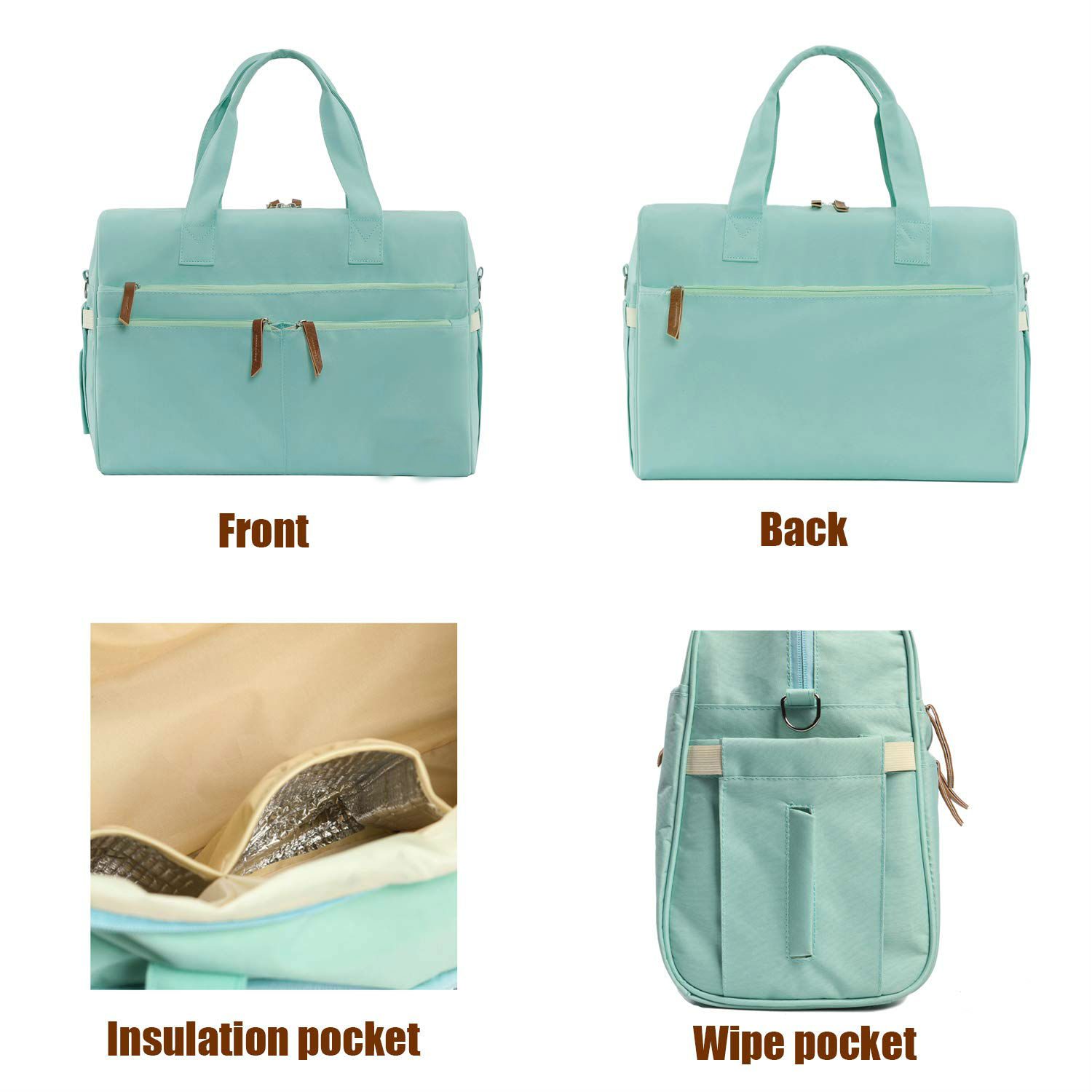 * [Large Capacity]--The diaper bag tote has multiple well-designed independent pockets, distributed on the front and back, both sides and inside,all baby’s items are independent of each other, quickly accessible, everything becomes clear organized.