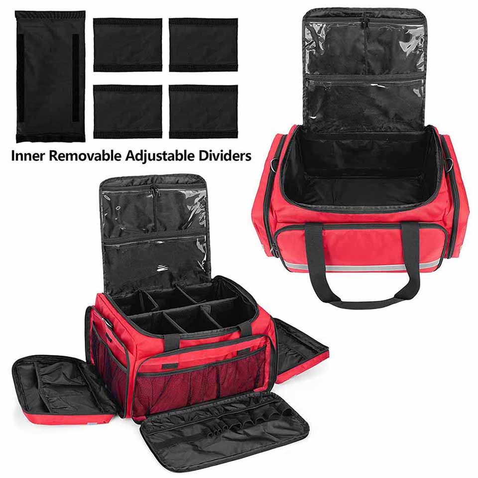 * LARGE COMPARTMENT - Enough space for you to keep your medical essentials, and the removable dividers can help you customize the bag. 3 top transparent PVC pockets with zipper for easily finding.