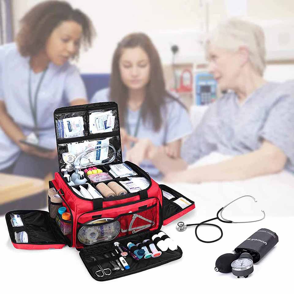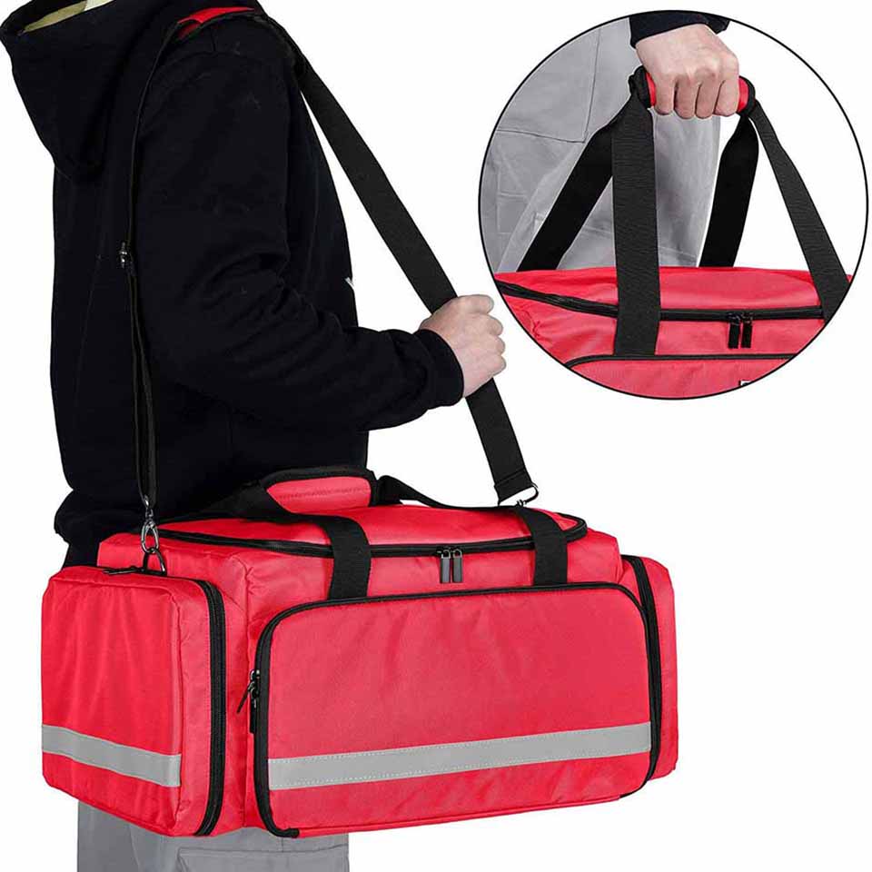 Essential details Application: Emergency, First Aid, EMT Weight: 3kg Capacity: Large Material: Nylon Size: 15.47*13.54*5.91 inches Color: Customized Certificates: BSCI,Sedex,TUV,ISO9001 Sample time: 5-7 Days Warranty: 1 year against defect of materials and manufacturing OEM/ODM: Acceptable MOQ: 500pcs