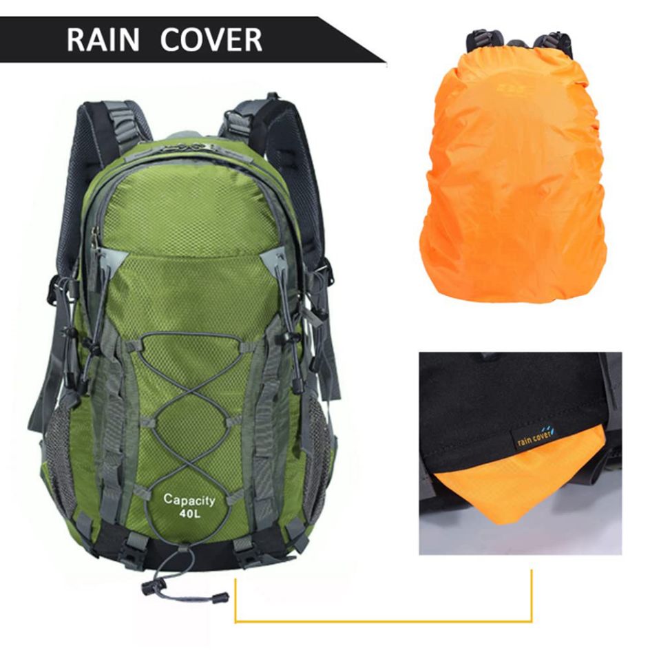 [ALWAYS KEEP YOUR ITEMS DRY]Our waterproof backpack is made of water resistant material. Futhermore, we also give away a rain cover. It is putted in the little pocket under the backpack. So it is no doubt that all your things will keep dry during rain. Just take this outdoor backpack, no matter the weather.