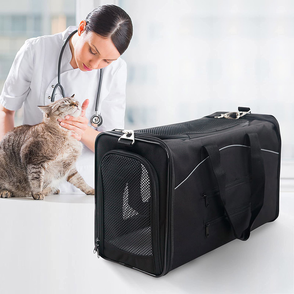 Essential details Place of Origin: Fujian, China Brand Name: chaumetbag Application: Small Animals Item Type: Backpacks Closure Type: zipper Material: Oxford Pattern: Solid Description: Airline Approved Soft-Sided Pet Travel Carrier Size: 43.2L x 25.9W x 28.5H cm Color: Customized Material Type: Oxford Certificates: BSCI,Sedex,TUV,ISO9001 Sample time: 5-7 Days Sample charges: USD50 Warranty: 1 year against defect of materials and manufacturing OEM/ODM: Accepable Function: for travel