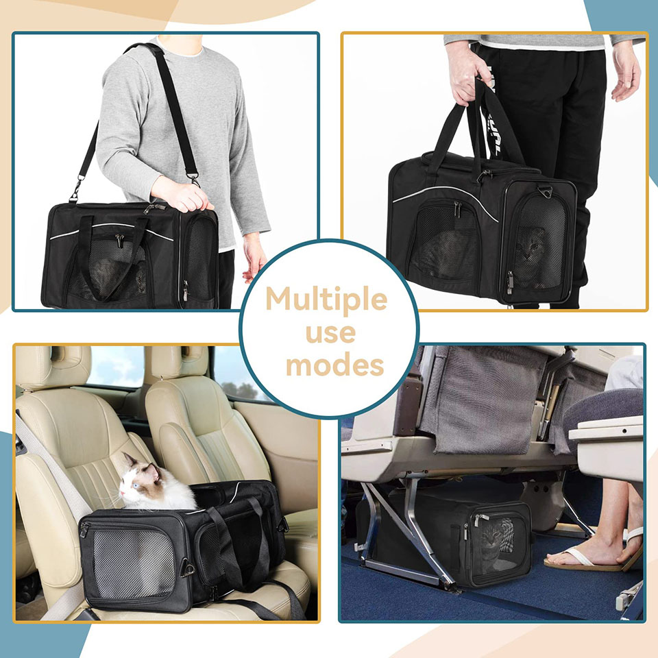 Type: Pet Cages, Carriers & Houses Item Type: Soft-Sided Carriers Closure Type: Zipper Material: Nylon Pattern: Animal Style: Fashion Season: All Seasons Cage, Carrier & House Type: Carriers Application: Small Animals Feature: Eco-Friendly, Breathable, Waterproof Size: 16.1x13.8x10.4inches Certificates: BSCI,Sedex,TUV,ISO9001 Sample time: 7-10 days Sample charges: USD50 OEM/ODM: Accepable Function: 2 Way Expandable Soft Sided Airline Approved Pet Carrier Warranty: 1 year against defect of materials and manufacture