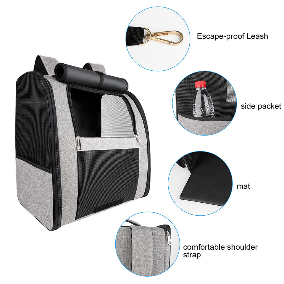 • Whether you need a cat backpack carrier or a dog backpack carrier, this pet carrier backpack will keep your fur friend safely inside, allowing you to focus on managing your trip. • The leash tether could be attached to your pet to prevent escape if you want to leave the top open for your pet to stick their head out. • The high grade scratch-resistant polyester and reinforced metal zippers serve as another barrier to prevent escape, so give your pet ultimate protection.