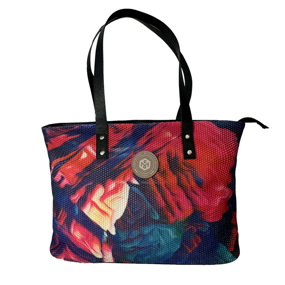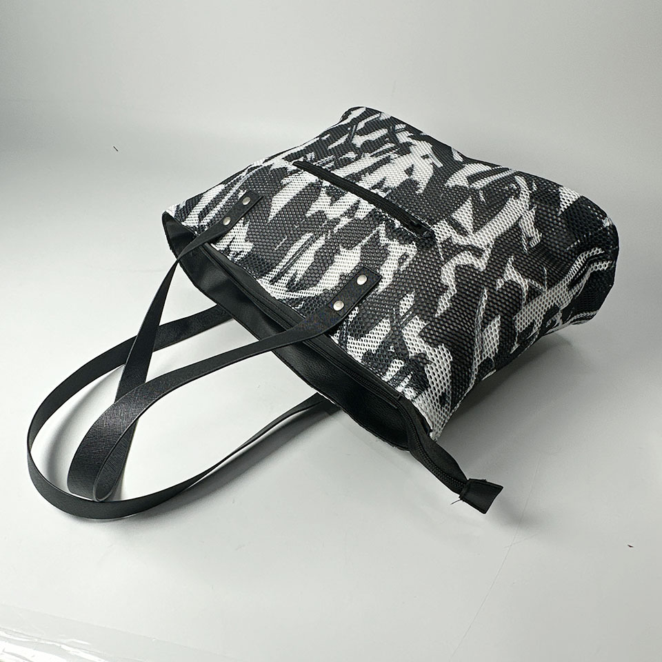 This tote bag is made of high-quality sandwich mesh fabric. This tote bag has a zipper closure and a small zippered compartment on the back, the handbag is super roomy with a zippered stash pocket to hold your wallet, cell phone, coin purse, and other important items. The interior has LOGO printing, which is fashionable and beautiful.