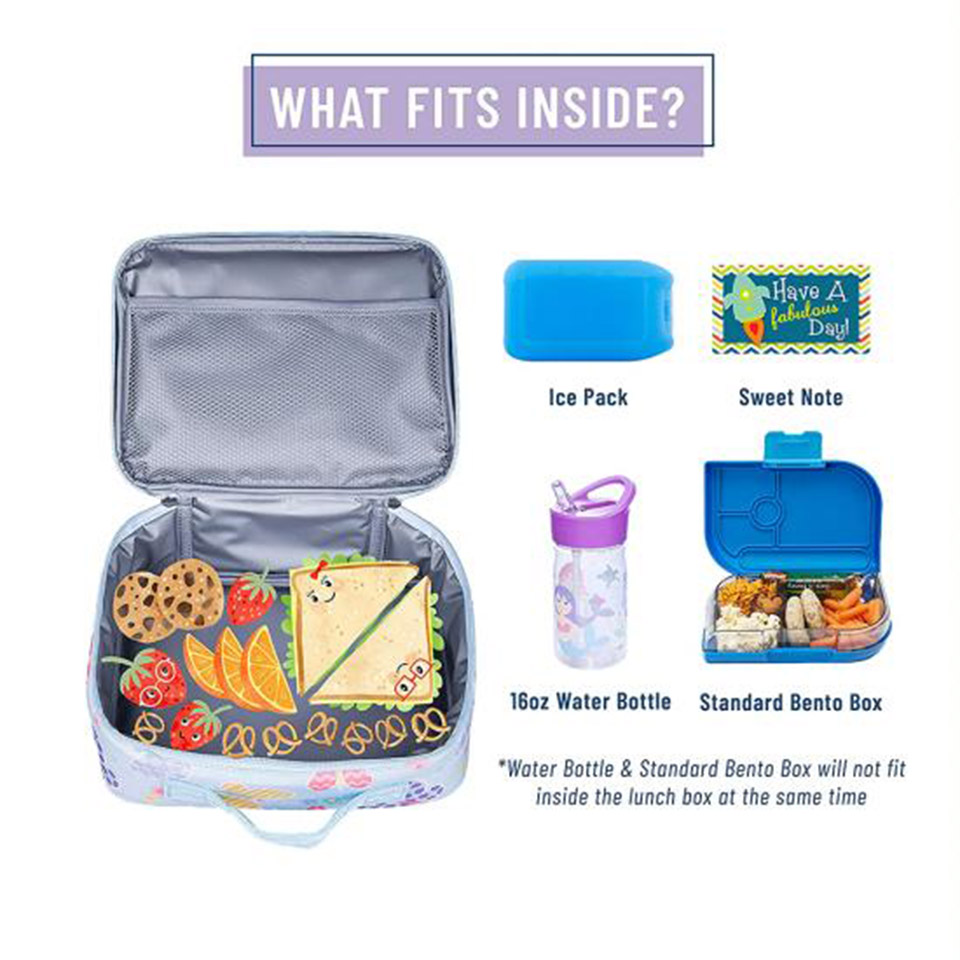 3.Features include a zippered front pocket for hiding a surprise dessert or fun note, inner elastic tabs to secure water bottles or ice packs, and a handy inner mesh pouch perfect for napkins and utensils.