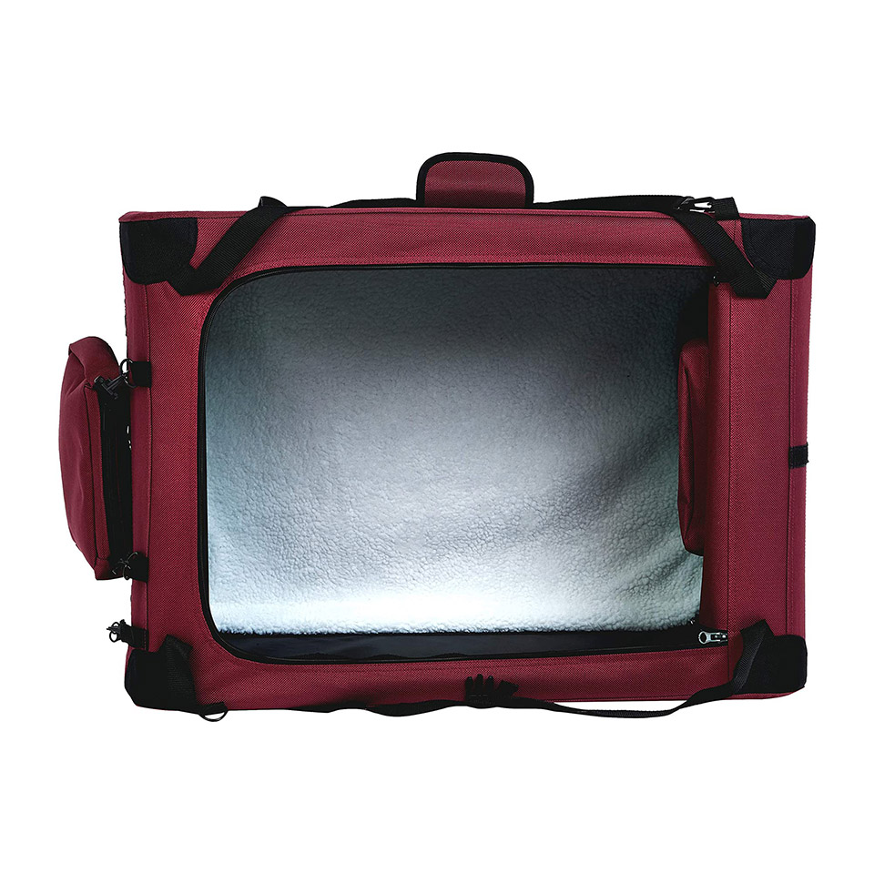 Soft-sided carrier in Red with top and front openings; for pets up to 25 pounds and under 22 x 14.1 inches (LxH), like a Havanese or Pug