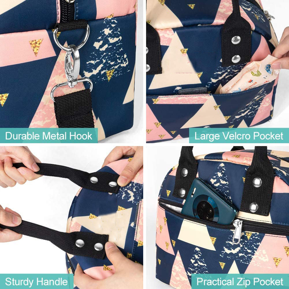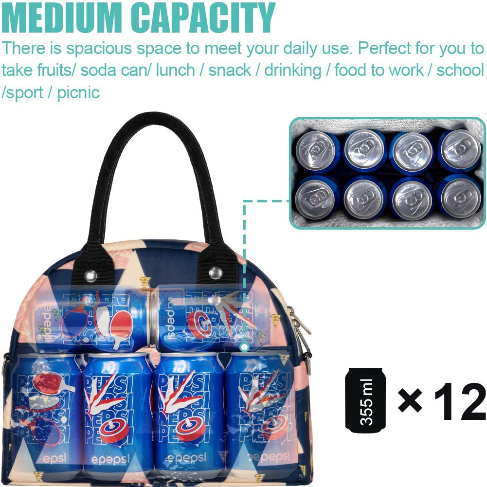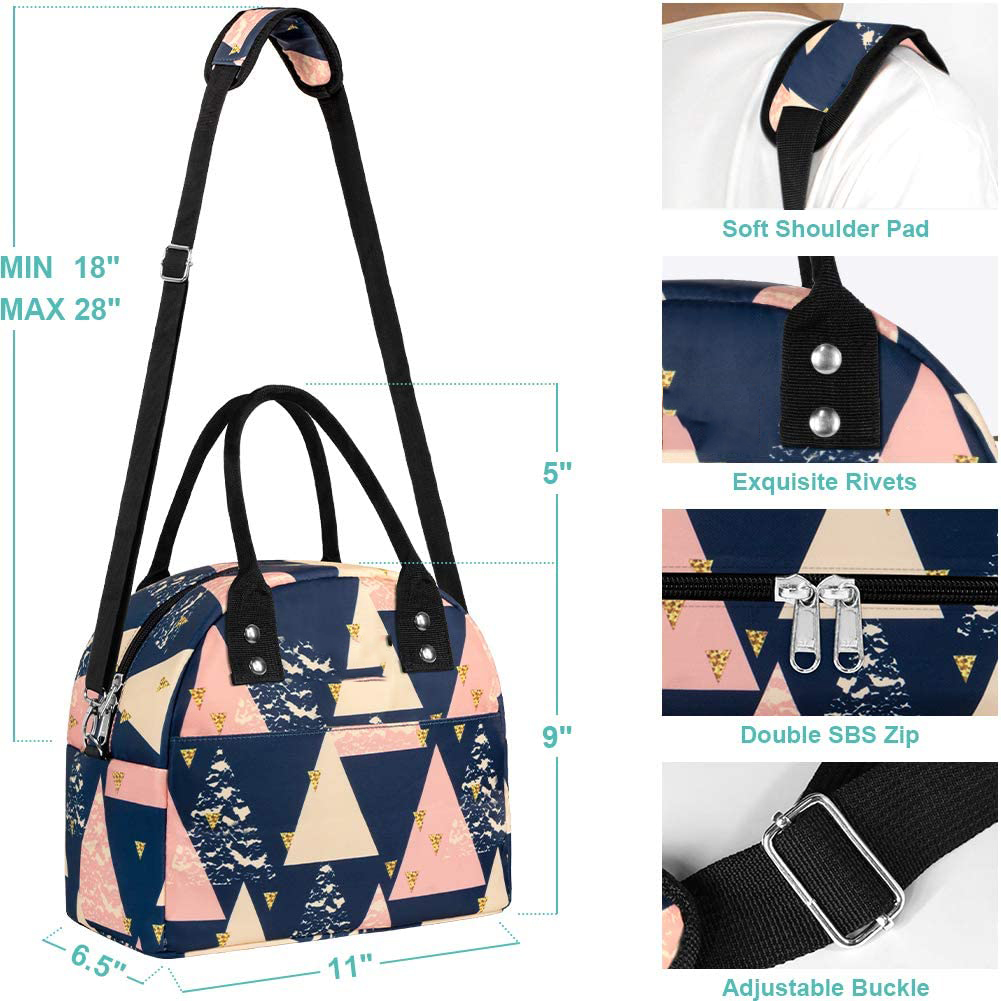 * [BALORAY LUNCH BAG]This lunch bag can be used as lunch bag, picnic bag, sundry bag, suitable for working women.Warm note: Traditional stitching process, so the inside insulated liner is water resistant, but not totally leakproof. * [Standard lunch bag Size]:10x 6.6x 8.5 inch.This lunch bag looks small but with large capacity, it could perfectly fit your lunch box, snacks, and even protein shake bottle.This is the honest feedback from our customers. *[ High Quality Material]:Durable oxford cloth and nontoxic aluminum foil( BPA FREE), perfect to pack your food and lunch containers.We have upgraded Insulation lined interior based on your needs. It will keep your food cold or warm for about 4 hours. ★THERMAL INSULATED: Lining with thick aluminum foil, interior padded with 5mm thicken insulation pearl foam, protect with 300d water resistant matte fabric, lunch box is designed with triple Insulated to keep food stay cold/warm/fresh for hours, perfect for on-the-go meals, picnics, road trips, lunch at the office, the school, the beach and more! ★SPACIOUS & MULTI COMPARTMENTS: Is designed for maximum storage efficiency, 1 main zipped compartment, 1 preposition velcro pocket, 1 practical zip pocket, not only provides you with plenty of space to pack all of your food and snacks you need whole day, as well as pack your keys, cards, phone chargers, napkins, water bottles, utensils, gum or other small stuffs you daily needs. ★THREE CARRYING OPTIONS: reusable lunch box features durable handle and comes with a removable and adjustable shoulder strap which can be adjusted from 18" to 28" when carrying, providing three options to carry: shoulder bag, oblique bag or fashion hand bag. Padded soft strap ensures comfortable carry. Wide opening design makes it convenient to fill and take food. Modern and lightweight design is convenient to be used as your lunch bag, cooler bag, picnic bag, sundry bag or shopping bag.