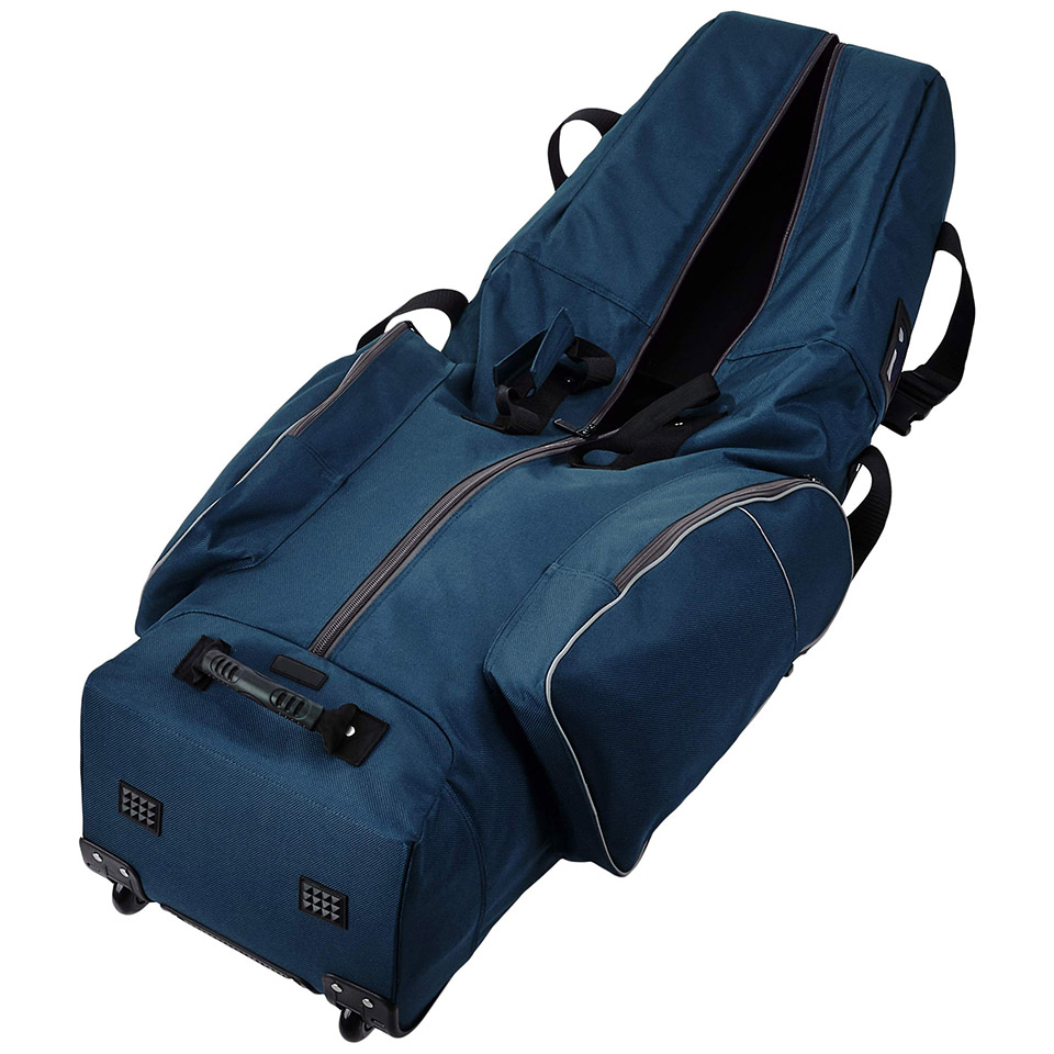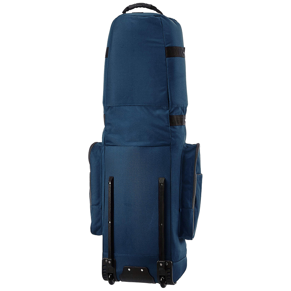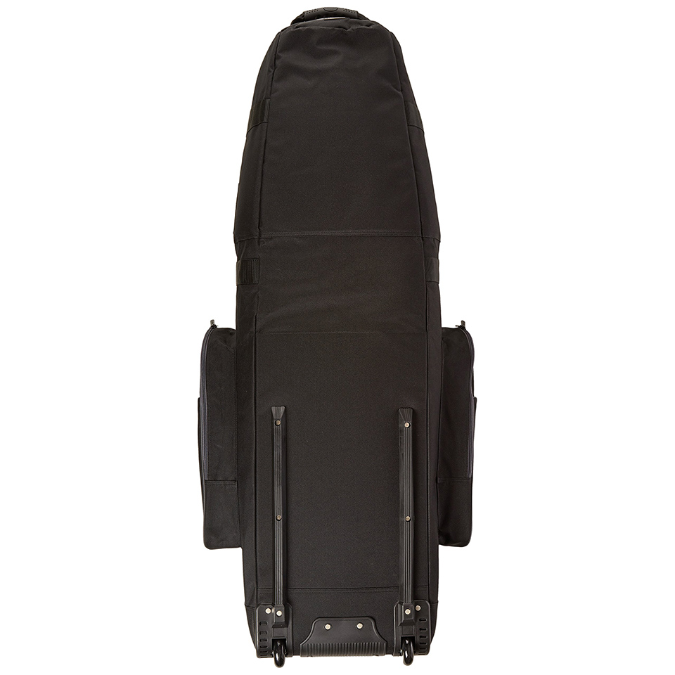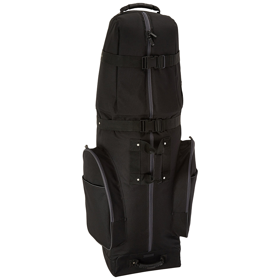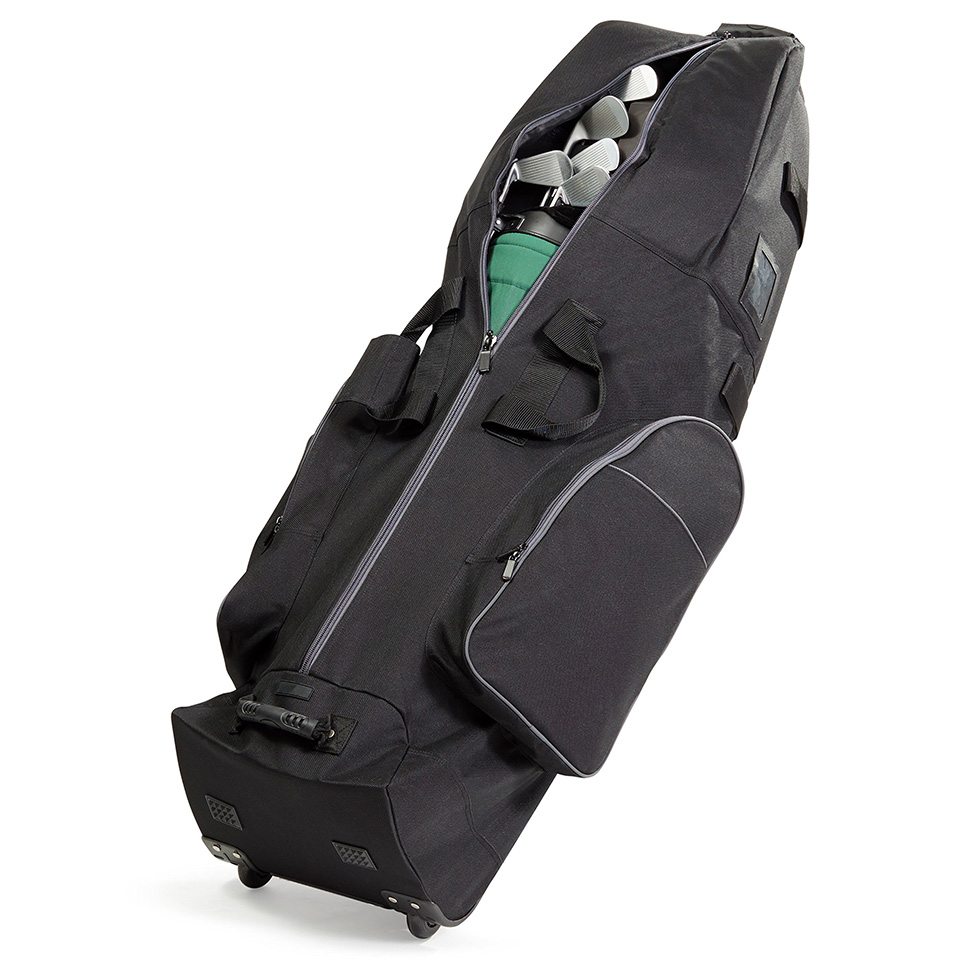 Soft-sided golf travel bag for easy transport of a set of golf clubs. Made of durable 1800D polyester fabric; Reinforced stress points; Stands on its own while holding a set of clubs. Smooth-rolling inline wheels; heavy-duty curb rail; well-placed, riveted handles.Compression straps keep the club secure; a padded top protects the club head. Multiple zippered compartments for extra gear; Measures 50 x 13 x 15 inches. |