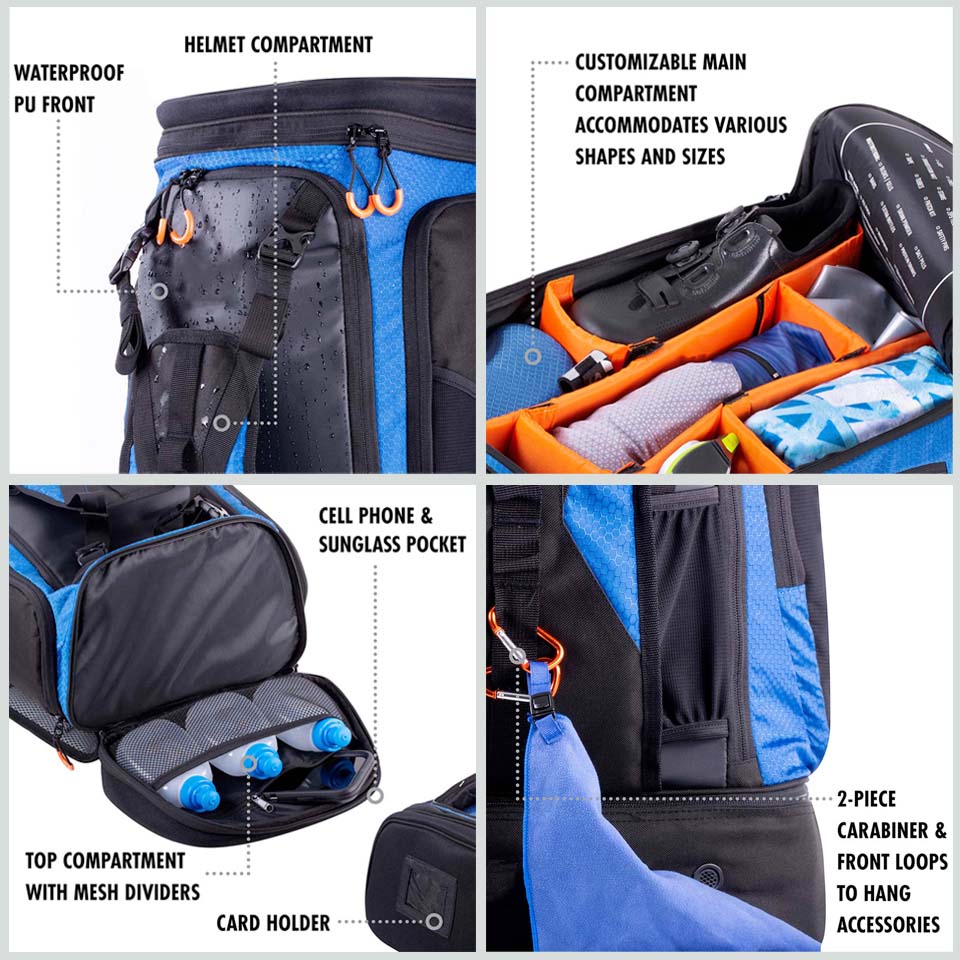 The Transition Bag holds everything you need on race day yet is compact enough that you won't feel like you're setting off on an expedition. The large insulated bottom section separates wet gear from the main compartment.Fully loaded this bag fits all airline carry-on requirements.