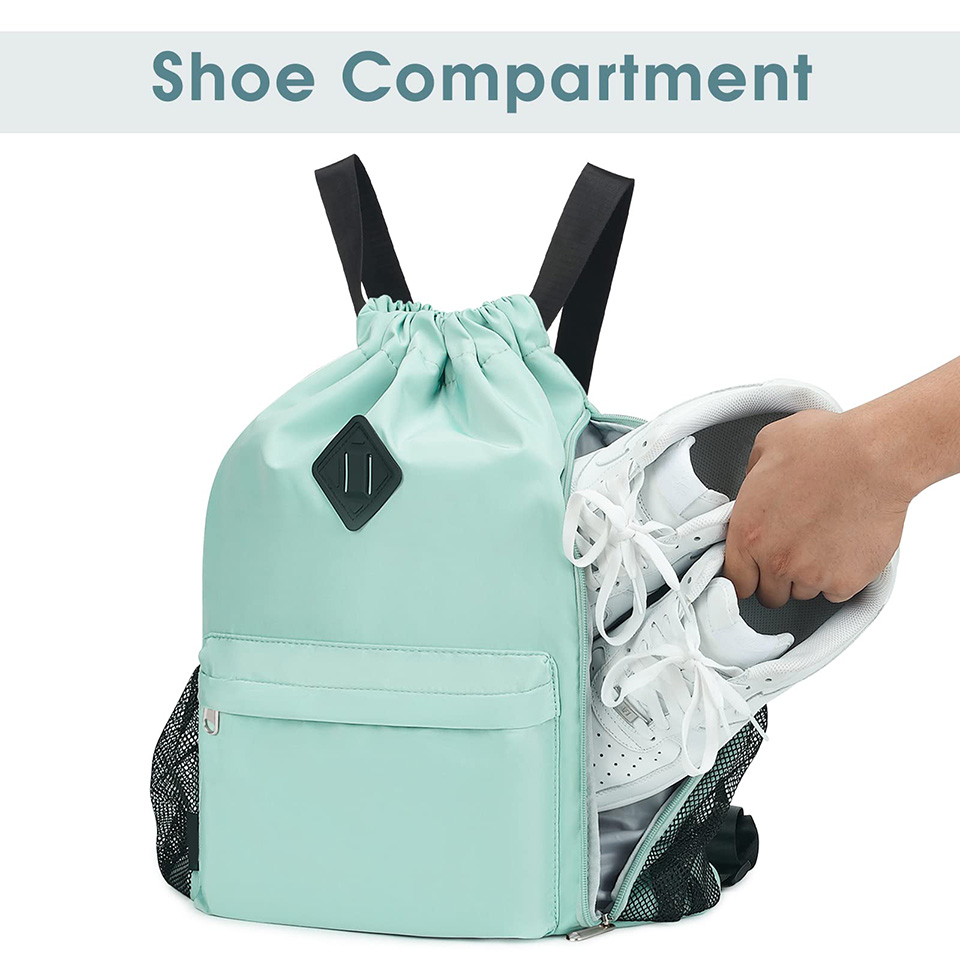 Sports Drawstring Backpack with Shoes Compartment Gym Bag Water-Resistant String Backpack Cinch for Women Men |