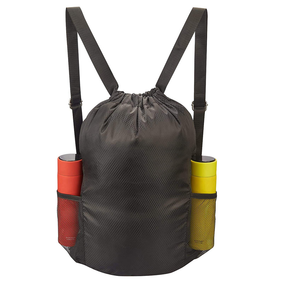 * LARGE CAPACITY - Size 17*12*6inch/43*31*15cm, large compartment but lightweight, ONE main compartment for your workout equipment, sports gear likes clothing, shoes, towel, phone, school books, daily supplies, etc. Two mesh pockets can carry water bottles, umbrella, sunscreen.One inside zipper pocket can hold small valuables such as wallet, cellphone, keys to prevent any pickpockets * VARIETY OF OCCASIONS - Perfect for gym, sport, yoga, dance, travel, carry-on, luggage, camping, hiking, team work, training and more * GREAT GIFT - Drawstring bags have no letters or patterns. You can print any logo or pattern on it to make a unique package, to make the best gift for Valentine's Day, Mother's Day, Christmas,Halloween,Birthday,Party and so on. * Adjustable Drawstring Strap - String length can be adjusted through the knots |