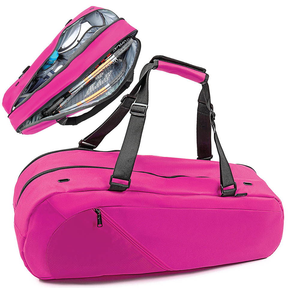 Brand Name: Chuanmetbag Description: Tennis Tote Bag Color: customized Dimension: 31 x 15 x 8 inches Material: 600D polyester + 210D Lining Certificates: BSCI,Sedex,TUV,ISO9001 Sample time: 5 Days Sample charges: USD50 OEM/ODM: Accepable Feature: Classic Multi-function Women's Tennis Bag Warranty: 1 year against defect of materials and manufacturing