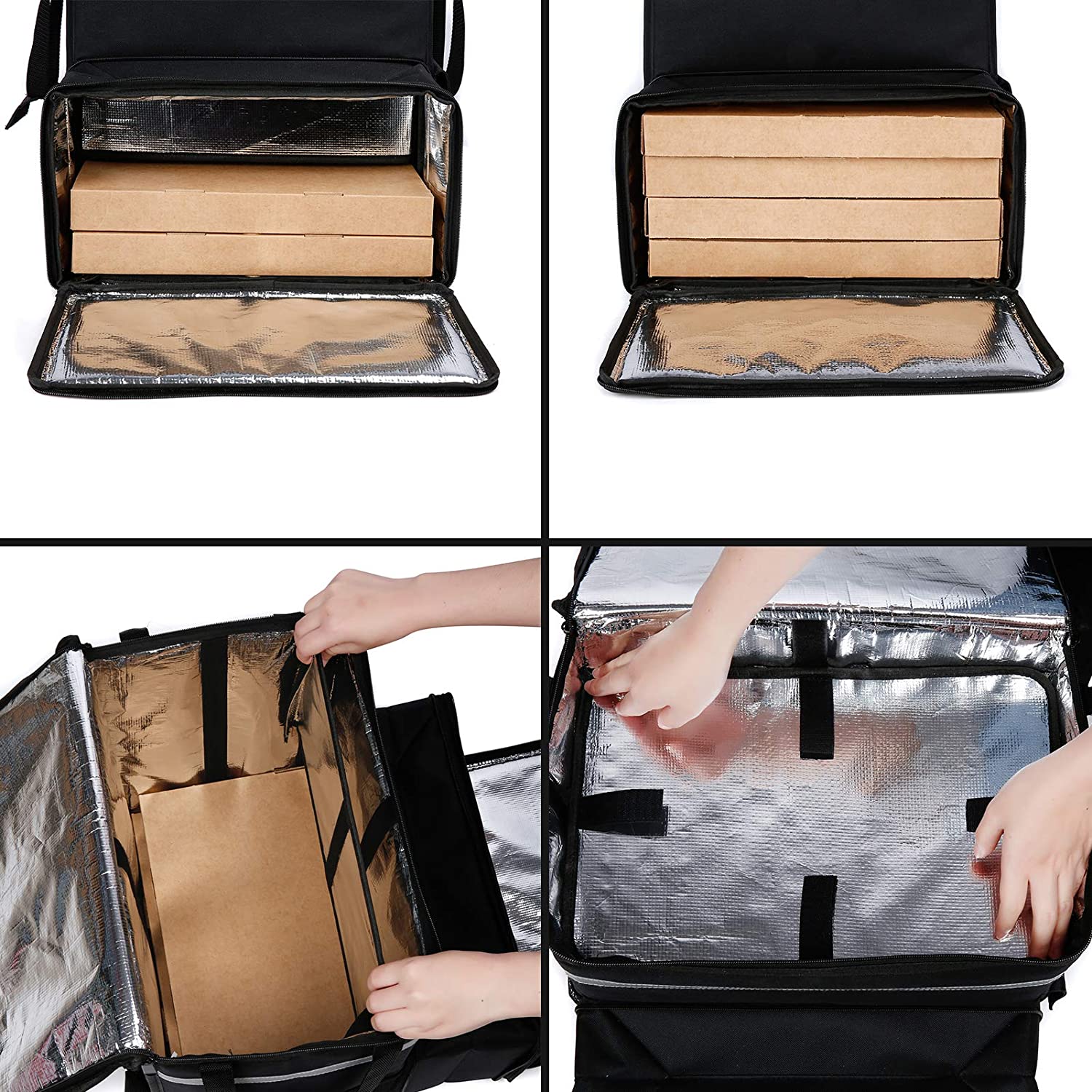 Thermal Pizza Delivery Backpack Insulated Thermal Disposable Food Delivery Bag with Pockets and Three Dividers