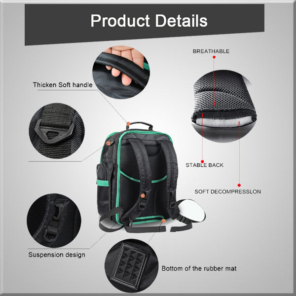 Warranty: 3 years Type: Bag Color: Other Customized support: OEM Brand Name: chaumetbag Product name: Electrician Tool Bag Material: Nylon Size: 14.5 x 11 x 22.5 in Colour: Customized Logo: Customized Logo Usage: Tools Holding Feature: Lightweight Sample time: 5-7 Days Certificate: BSCI,Sedex,TUV,ISO9001 MOQ: 300pcs