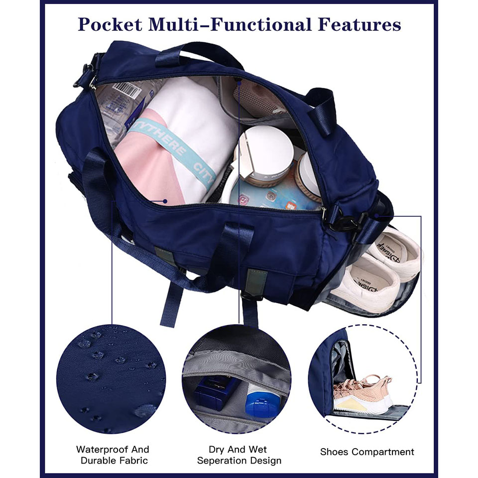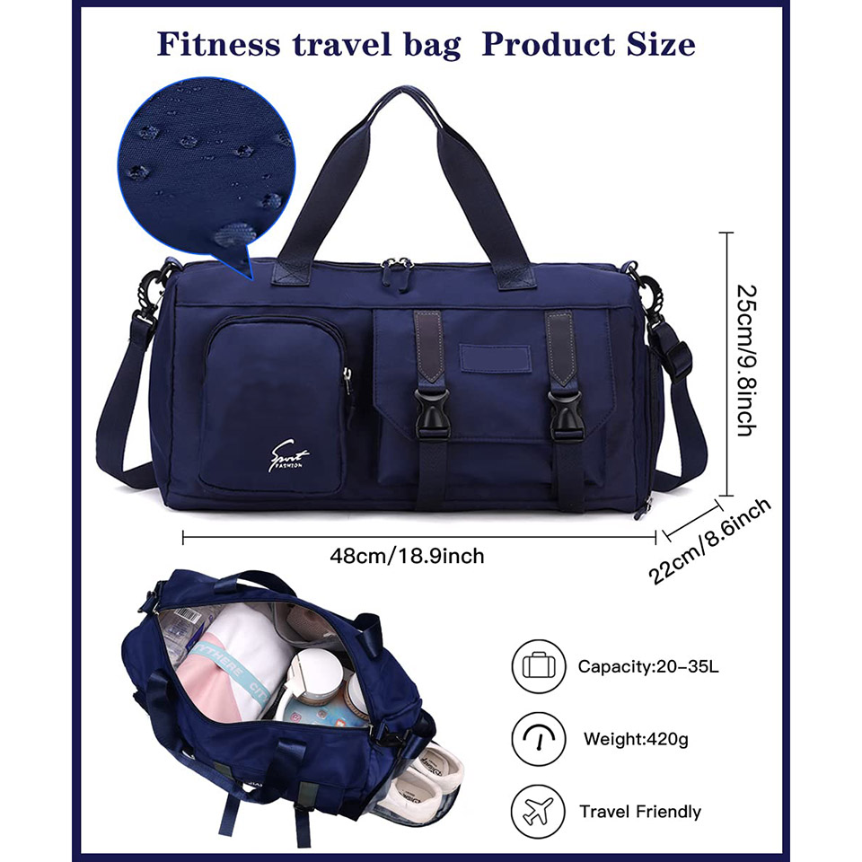 Sports bag travel bag fitness: This travel fitness bag has been designed with great attention to detail and practicality. It has a user-friendly division and thoughtful features such as an anti-theft bag and a luggage strap with secure buckles. These design elements increase comfort and convenience during