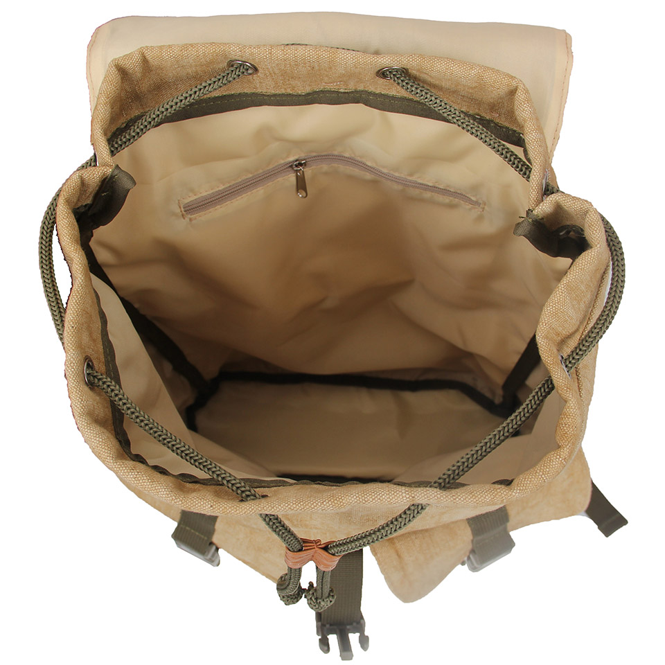 【Multiple pockets】 Flap cover with buckle design, drawstring, and snap button