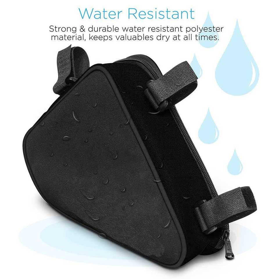 * Big zippered opening mouth design for easy access, with durable zipper closure, Slim body design with high capacity to minimize the wind resistance * Water and Weather-resistant strong and durable polyester material helps protect stored items * Fits most essentials like smartphones, wallet, keys, small bike pump, cable lock, repair tools etc. (not included) |