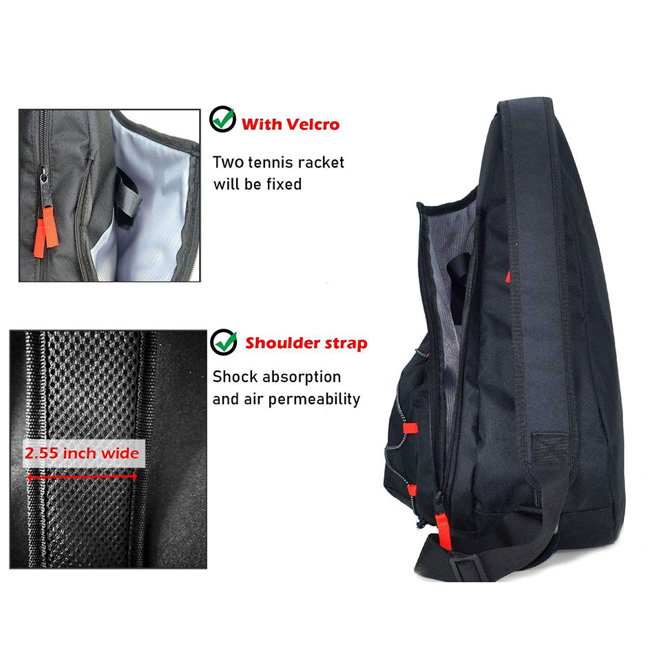 * Fixed Tennis Racquet Pocket: With fixing rope design, the tennis backpack offers your rackets a more stable state while walking. A spacious spacious compartment for two 27-inch tennis rackets, badminton rackets or other sports accessories. Size:15.9"W x 7.8"D x 20.8"H