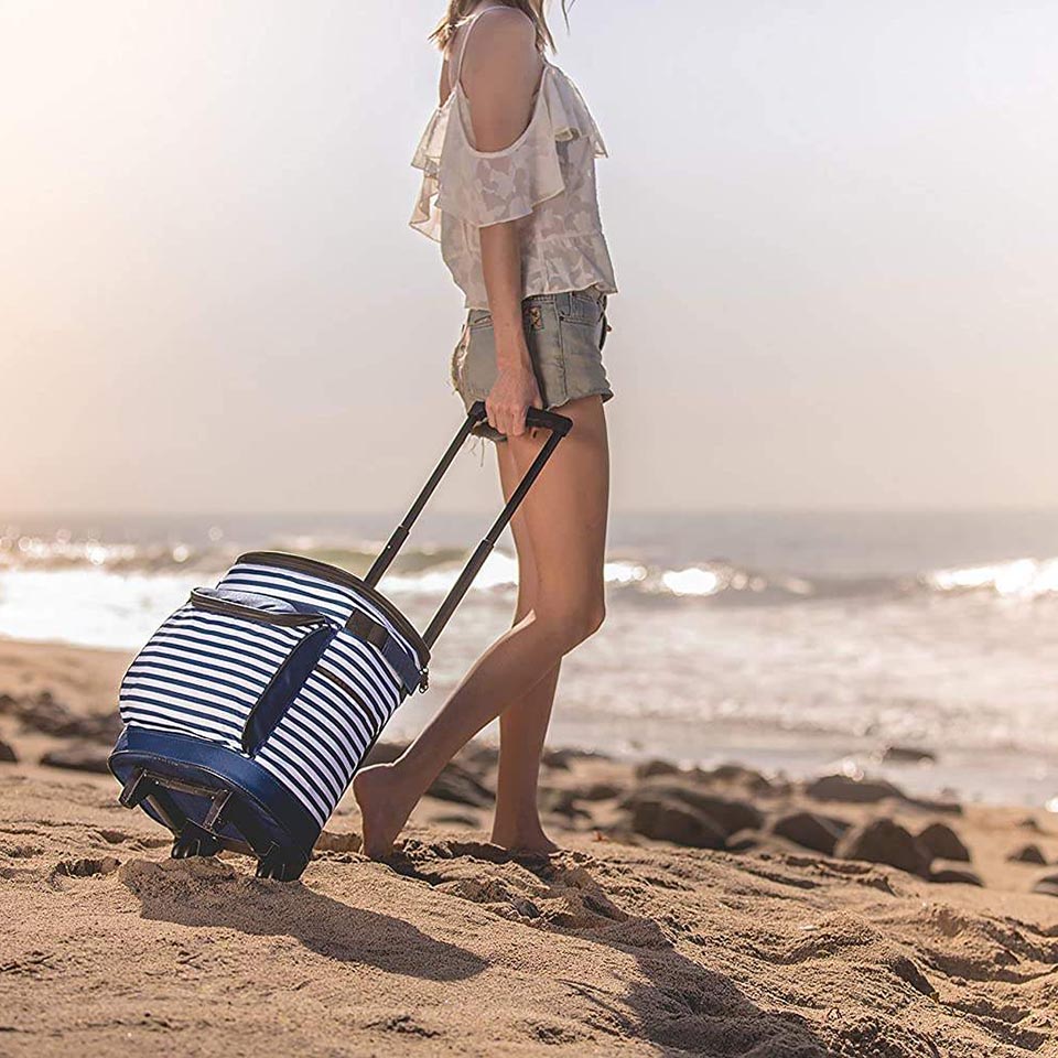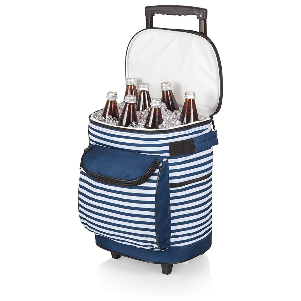 * Portable rolling portable picnic cooler - Features soft-sided, durable polyester construction