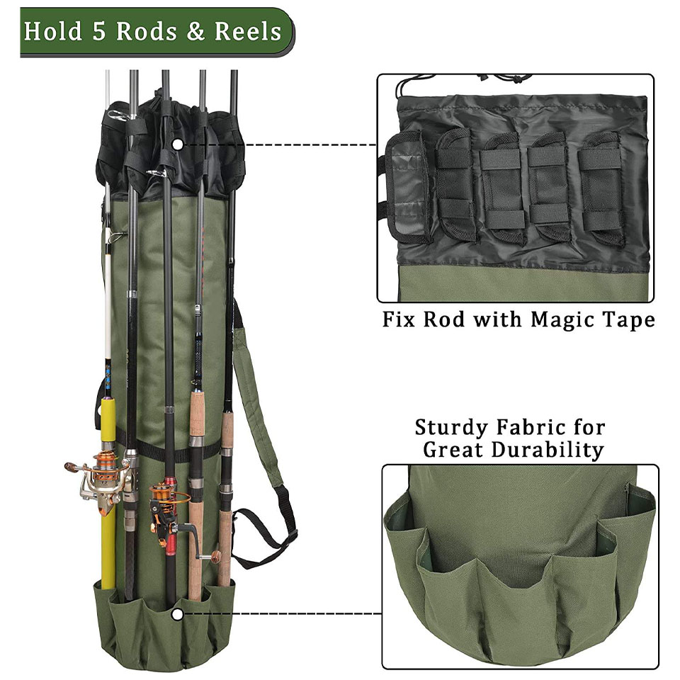 * The Rod Bag Pole Holder can holds 5 rods and reels on the outside. Fix it with a magic tape during outdoor fishing. Convenient for store and carry