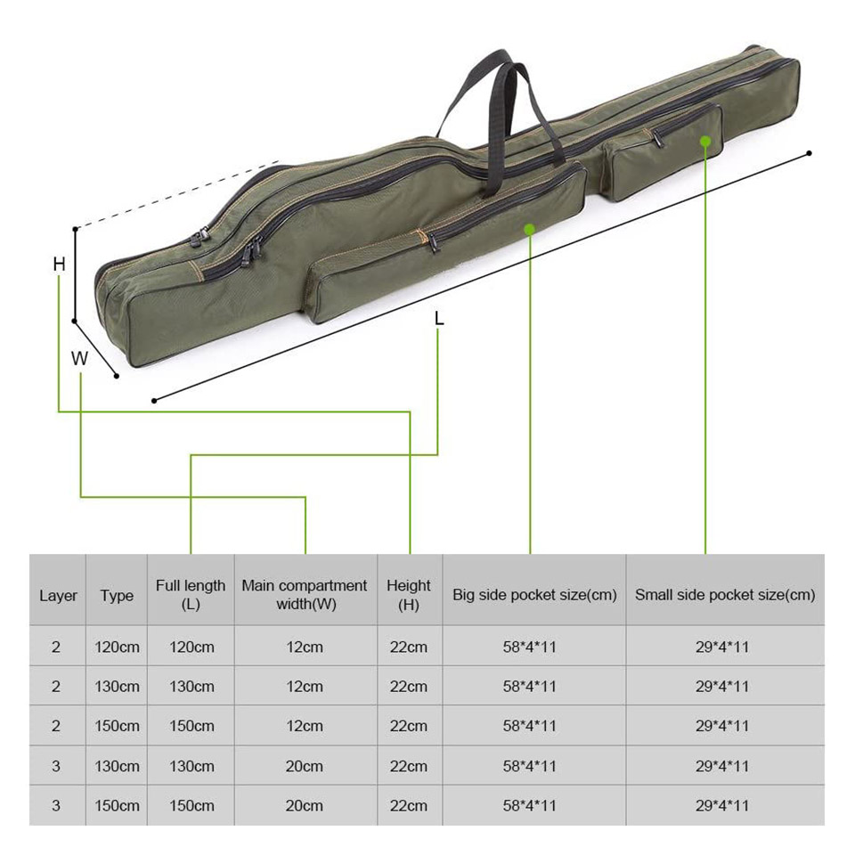 Product name:fishing bag Material:polyester Color:Green Size: 31.5″ x 9.5″ x 6″inches