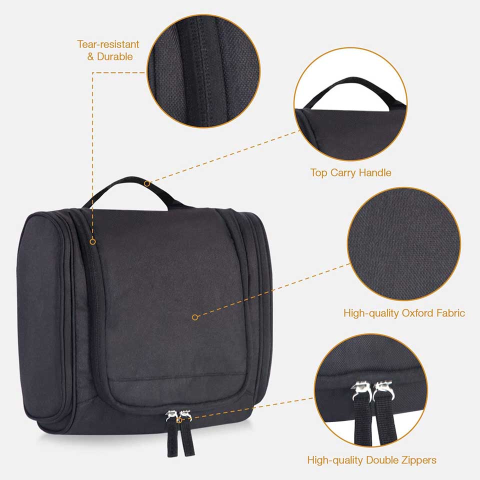 【High Quality and Durable Material】The travel makeup bag made of high-quality Oxford cloth fabric, which is lightweight and textured and the fabric at the zipper is tear-resistant and durable; High-quality double zipper closure design, convenient for quick access. As avid travelers ourselves, we understand that you need travel gear you can depend upon. At MULISOFT, quality is a top priority and our hanging toiletry bag are designed with care and built to last