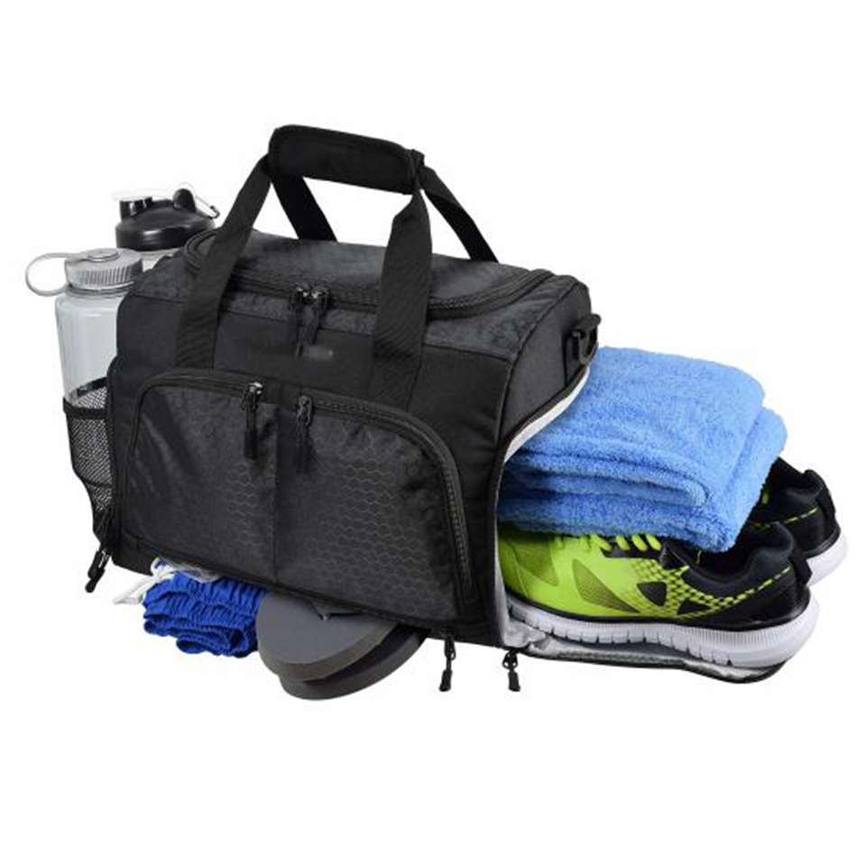 Closure Type: Zipper Gender: Unisex Main Material: Polyester Product name: Sports Duffel Bag gym bag Color: Customized Color Material: Polyester Size: 20 x 11 x 10.5 inches Usage: outdoor sport Logo: Accept Customized Logo Certificate: ISO9001/BSCI Style: Fasion OEM/ODM: Acceptable Warranty: 1 year against defect of materials and manufacturing