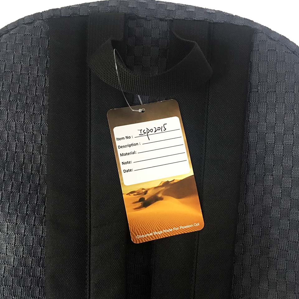 Essential details Place of Origin: Fujian, China Brand Name: Chaumetbag Type: Softback Gender: Unisex Pattern Type: Solid Closure Type: Zipper Interior: Interior Zipper Pocket Carrying System: Physiological Curve Back Handle/Strap Type: Soft Handle Lining Material: Polyester Main Material: Polyester / Nylon Style: Fashion Feature: Anti-Theft, Waterproof Capacity: 30 litre Description: Camera Laptop Backpack Size: 12.99"(L)*6.69"(W)*16.93"(H); Inner bag size : 11.0''*5.51''*7.09'' Color: Customized Material Type: Polyester / Nylon Certificates: BSCI,Sedex,TUV,ISO9001 Sample time: 5-7 Days Warranty: 1 year against defect of materials and manufacturing OEM/ODM: Acceptable Function: for school,business